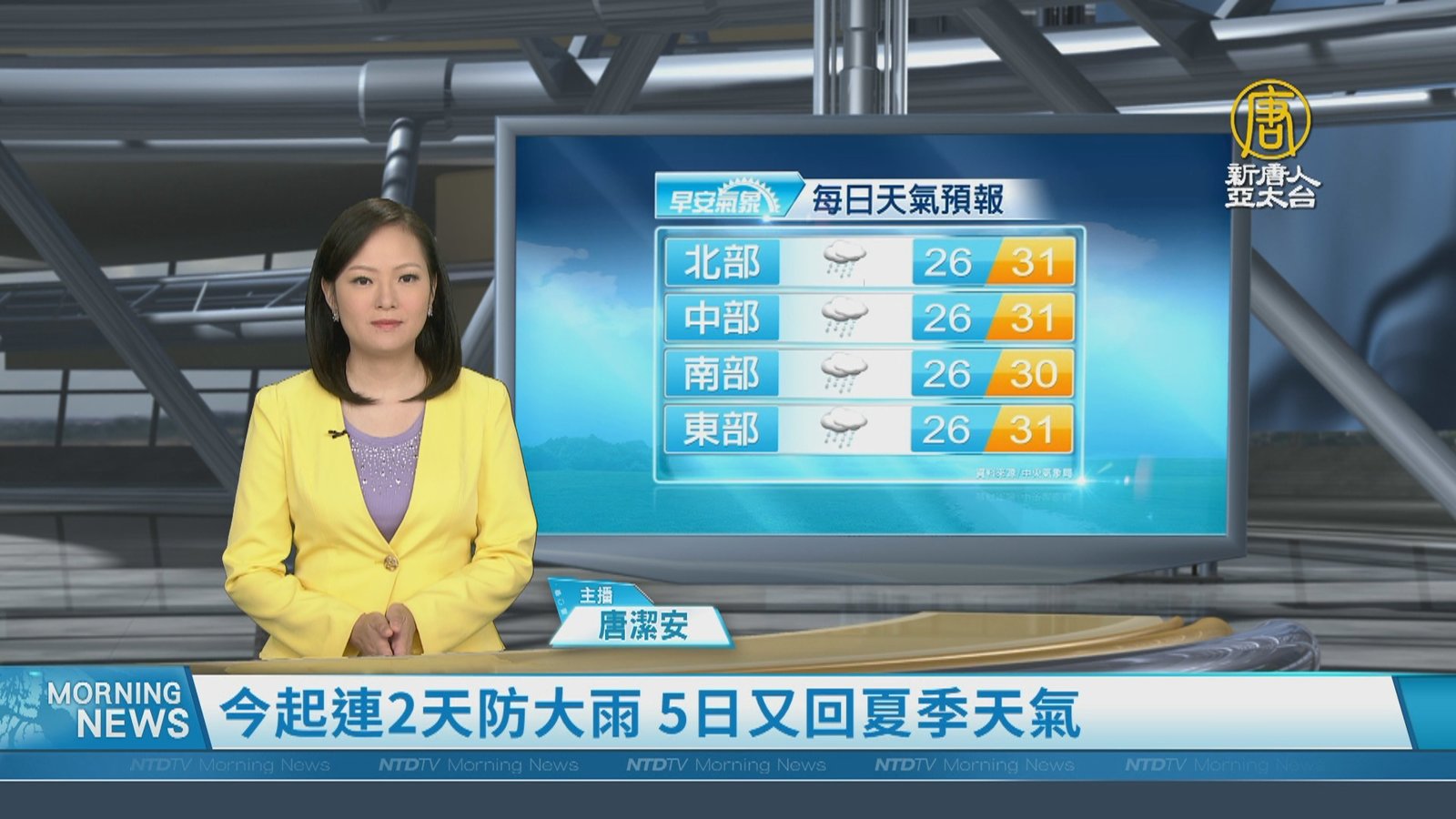 今明兩天,由於低壓帶通過台灣上空,各地降雨機率都偏高,雨區不斷擴大,台南、新北累積雨量皆破百毫米,氣象局針對19縣市發布豪大雨特報,尤其南部、東南部要小心短延時強降雨,甚至伴隨雷擊和閃電。預計要到週五過後,雨勢才稍稍緩解。另外南海又有熱帶擾動生成,對台灣的影響還要持續觀察。 //asset1.ntdtv.com.tw/public/uploads/assets/2022/08/02/2022-08-02-62e9227514d07.mp4 氣象|降雨|低壓帶|豪大雨特報|天氣預報|202208022022-08-02 22:21:51
