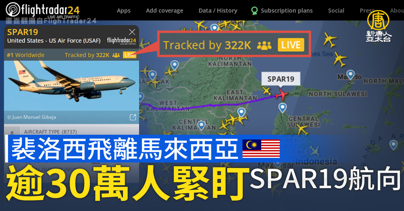 裴洛西飛離馬來西亞 30萬人緊盯SPAR19航向