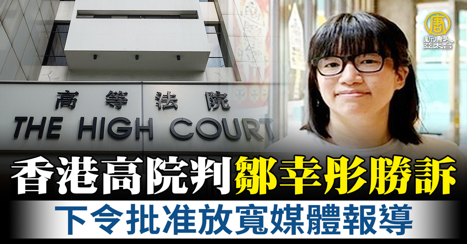 香港高院判鄒幸彤勝訴 下令批准放寬媒體報導