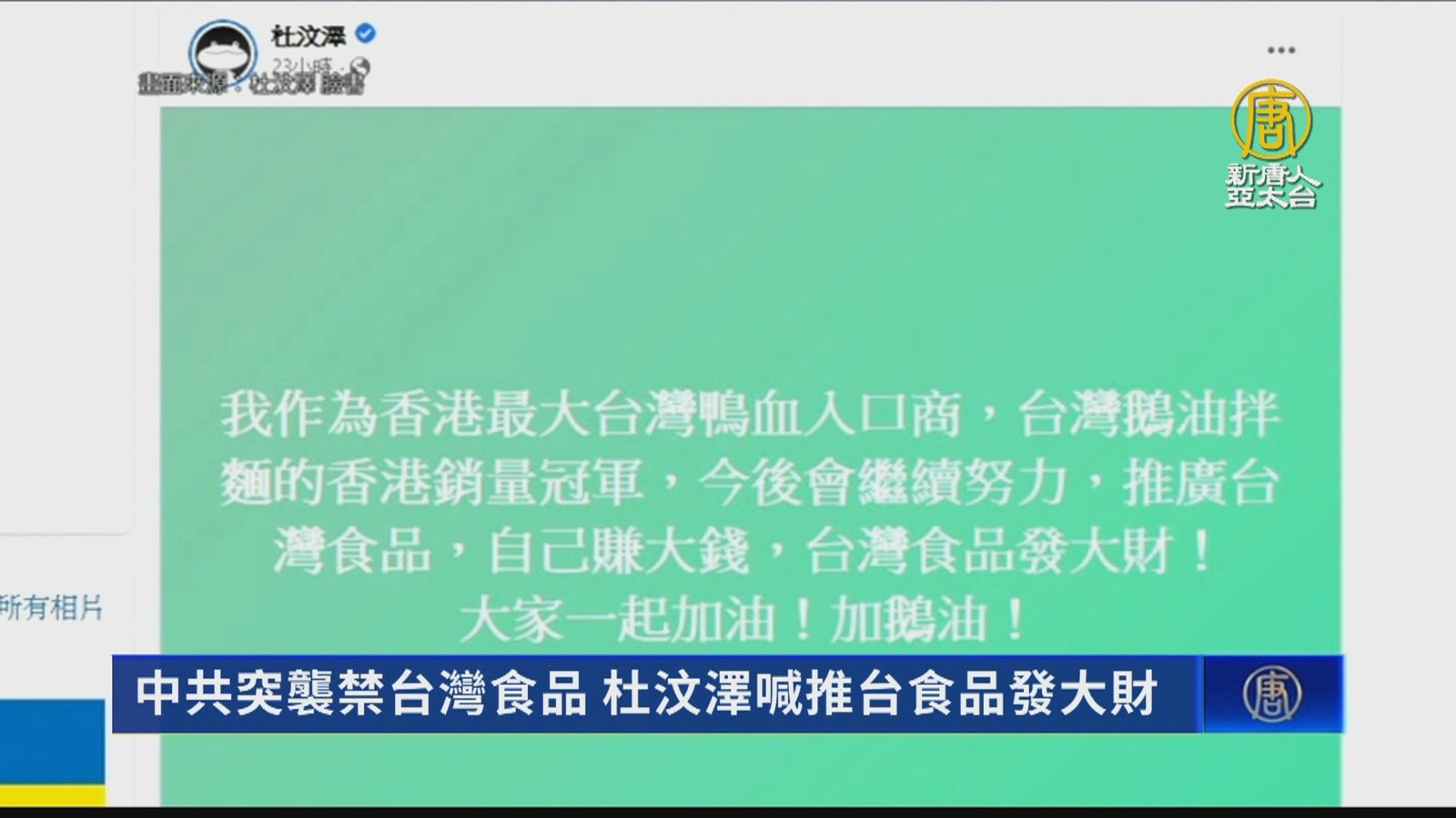 中共突襲禁台灣食品 杜汶澤喊推台食品發大財