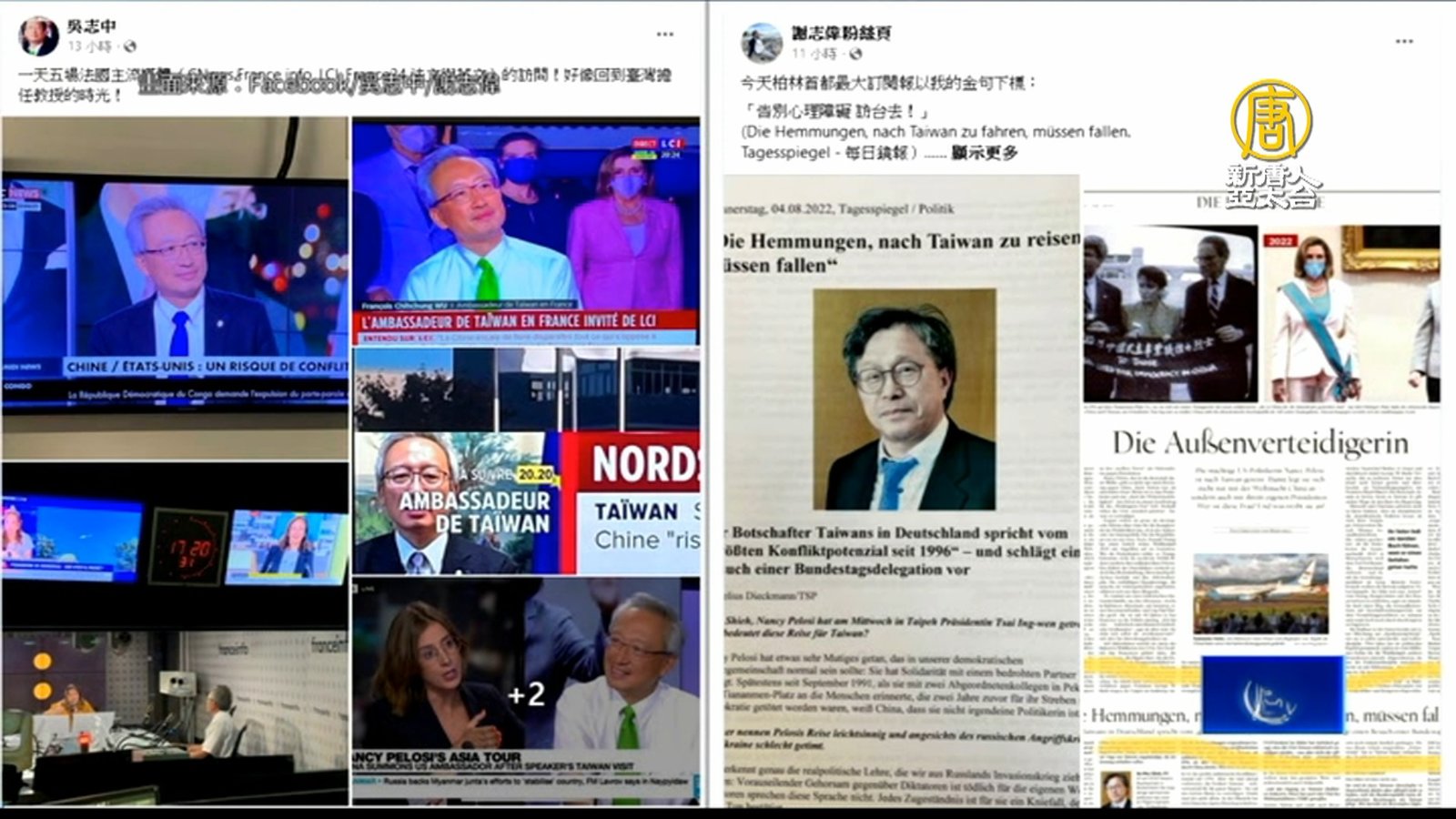 歡迎回來。美國眾議院議長裴洛西的歷史性訪台行程,及中共宣稱的圍台軍演,連續幾天佔據國際媒體的主要版面。與此同時,中華民國的駐外代表們,近日也成為了各國主流媒體爭相採訪的對象。 //asset1.ntdtv.com.tw/public/uploads/assets/2022/08/04/2022-08-04-62ebbfa1c599a.mp4 美台關係|裴洛西訪台|中共|軍演|吳志中|謝志偉|劉德立|202208042022-08-04 22:14:37