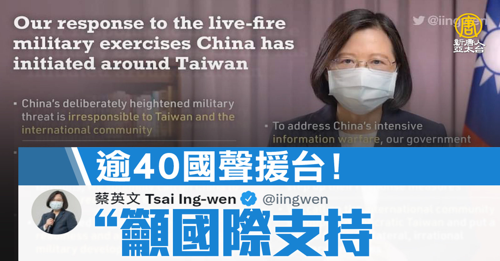 逾40國聲援台!蔡總統發英日文推特籲國際支持