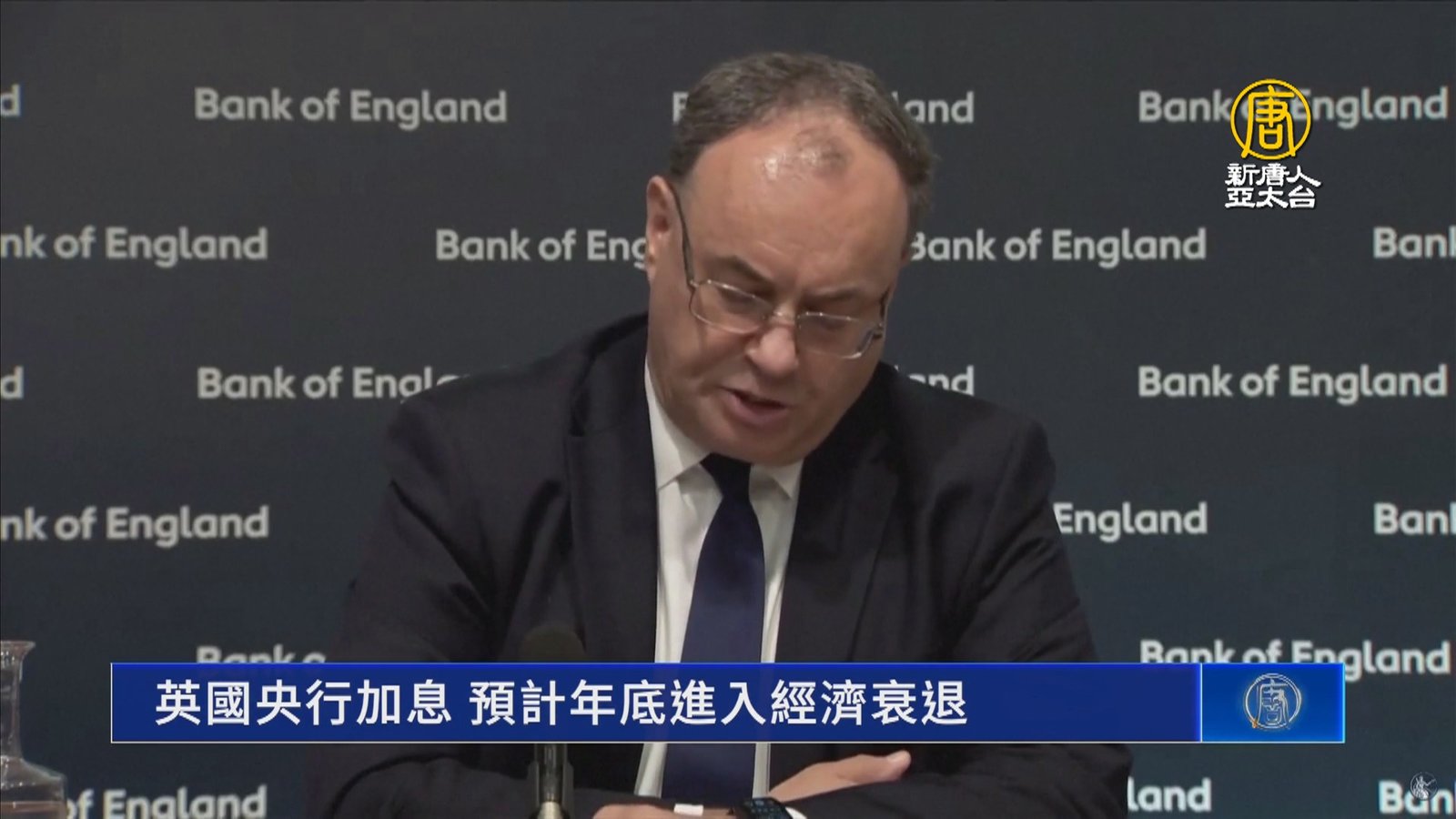 週四,英國央行做出了27年來最大的加息動作,並警告,英國將在今年年底進入為期一年的衰退期。 //asset1.ntdtv.com.tw/public/uploads/assets/2022/08/05/2022-08-05-62ed16a89e18a.mp4 英國央行|加息|經濟衰退|通膨|202208052022-08-05 22:25:47