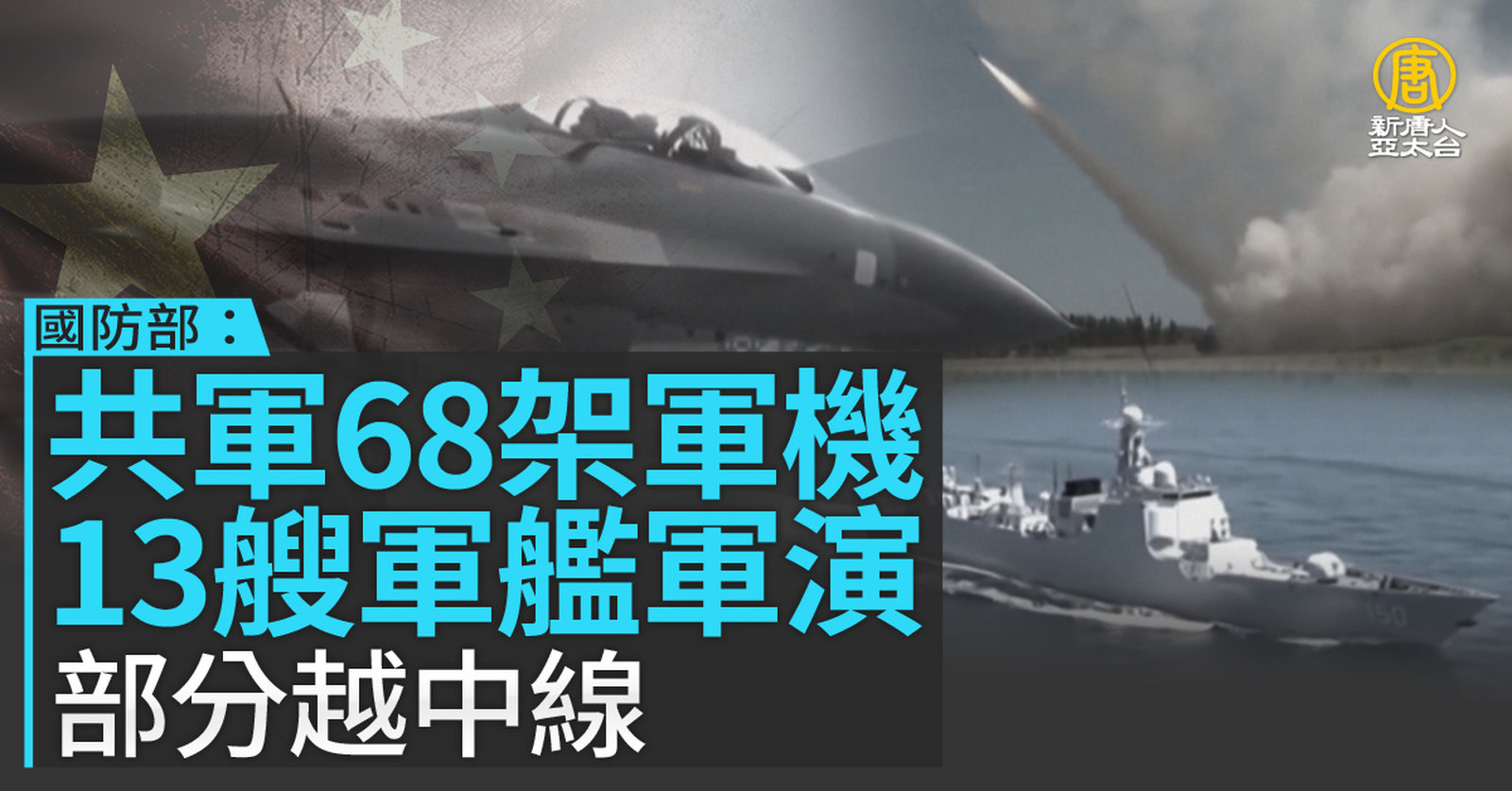 國防部:共軍68架軍機、13艘軍艦軍演 部分越中線