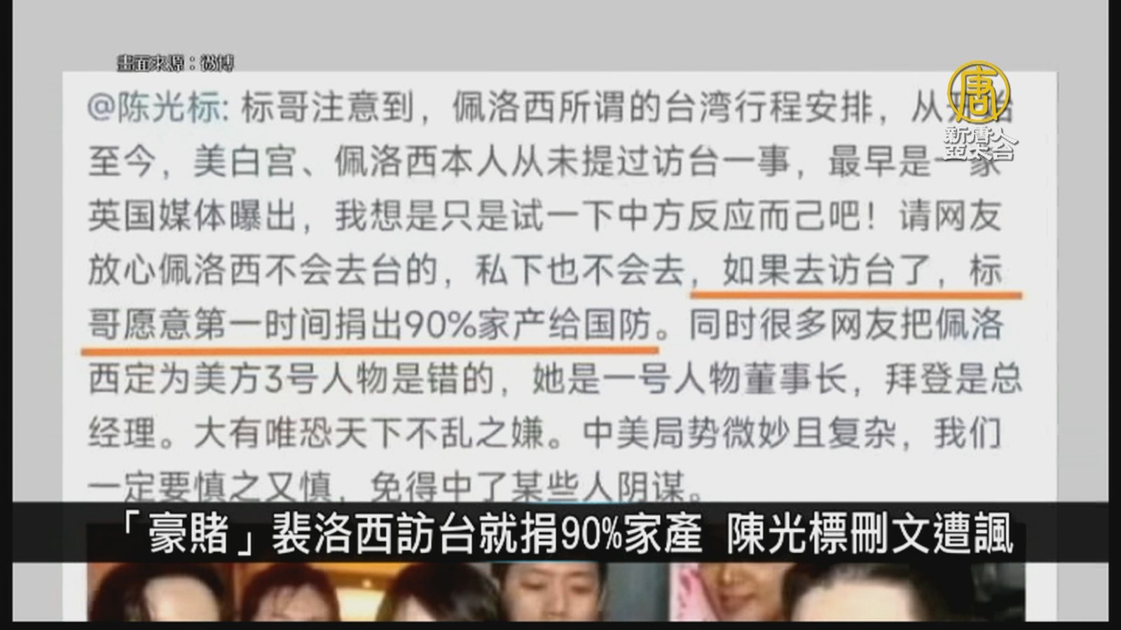 「豪賭」裴洛西訪台就捐90%家產 陳光標刪文 微博翻車|中國一分鐘