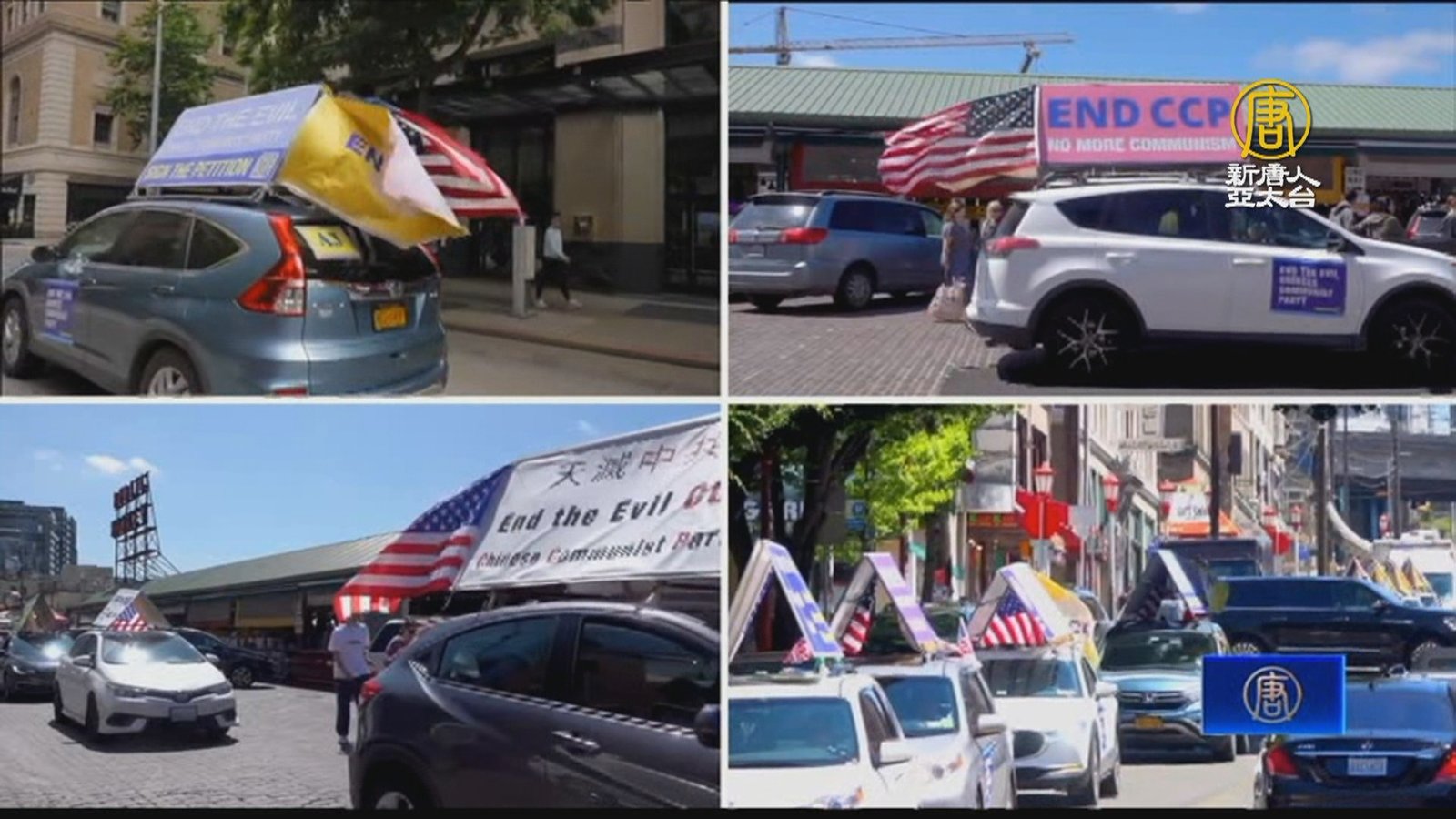慶四億人三退 打倒中共惡魔車隊抵達西雅圖
