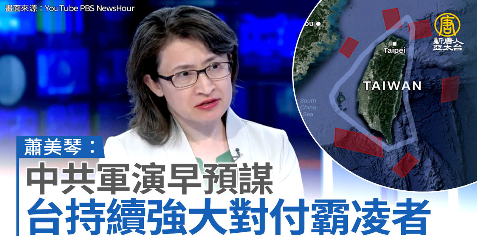 中共在台周邊進行大規模軍演,國際高度關注緊張局勢,駐美代表蕭美琴5日一連接受兩家美國電視台專訪,她以孩童在學校遭到霸凌為例指出,台灣不該向中共低頭,而是要持續強大,並且強化自我防衛,在降低風險的同時,也不犧牲自由。 //asset2.ntdtv.com.tw/public/uploads/assets/2022/08/06/2022-08-06-62ee5b4b786c9.mp4 美台關係|裴洛西訪台|蕭美琴|中共|台海和平|202208062022-08-06 21:25:46