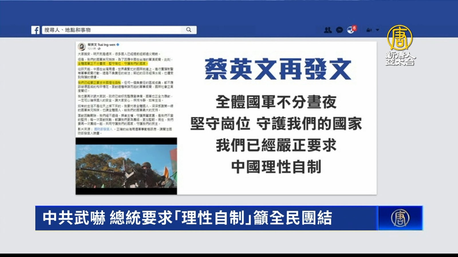 中共武嚇 總統要求「理性自制」籲全民團結