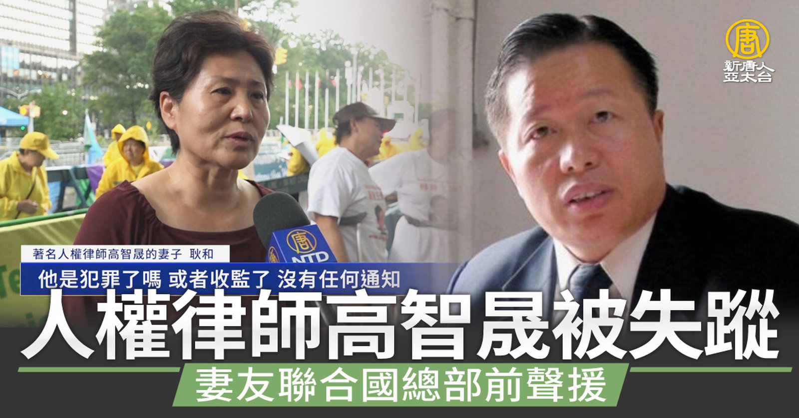 中國良心高智晟「被失蹤」五年 妻友聯合國總部前聲援