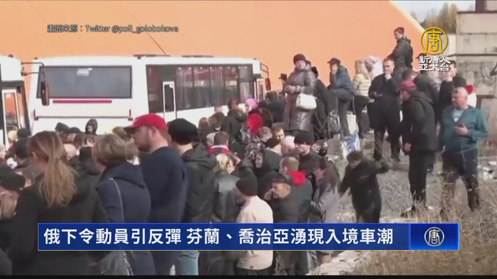 歡迎回來。俄羅斯入侵烏克蘭失利,下令局部動員,引發抗議浪潮,有大批民眾選擇離開俄羅斯。與俄國接壤的芬蘭、喬治亞等國邊境,21日開始湧現大量車潮。英國衛報報導,有些沒有在軍隊服役過的俄羅斯人,卻收到了徵兵,令他們的親人感到不滿。 //asset2.ntdtv.com.tw/public/uploads/assets/2022/09/23/2022-09-23-632dac9063fef.mp4 俄烏局勢|俄羅斯|普丁|澤倫斯基|芬蘭|202209232022-09-23 22:28:37