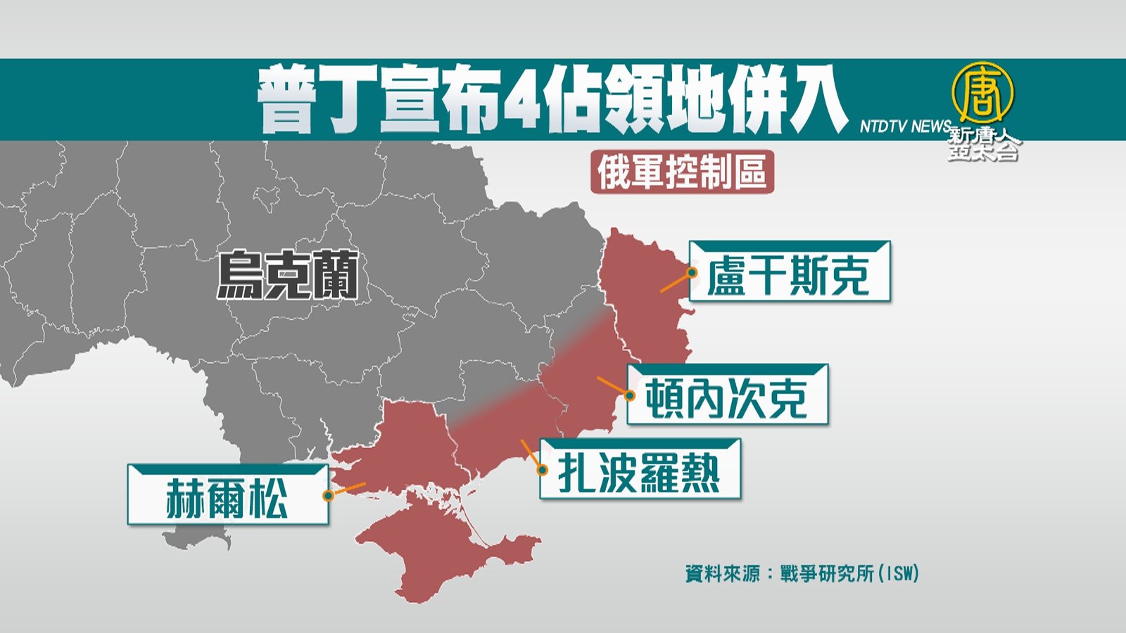 再來聚焦烏俄局勢,台灣時間今晚8點,俄羅斯總統普丁在克里姆林宮主持一場簽署儀式,並發表講話,對外正式宣布將俄軍在烏克蘭的佔領區納入俄國版圖,其中包括札波羅熱與赫爾松2州部分土地。烏國總統澤倫斯基譴責俄軍所到之處充滿死傷,誓言收復所有領土,並召開國安會議制定最新應對計畫。 //asset1.ntdtv.com.tw/public/uploads/assets/2022/09/30/2022-09-30-6336eb24577ba.mp4 俄烏局勢|俄羅斯|普丁|入俄公投|併吞|烏克蘭|澤倫斯基|202209302022-09-30 21:44:13