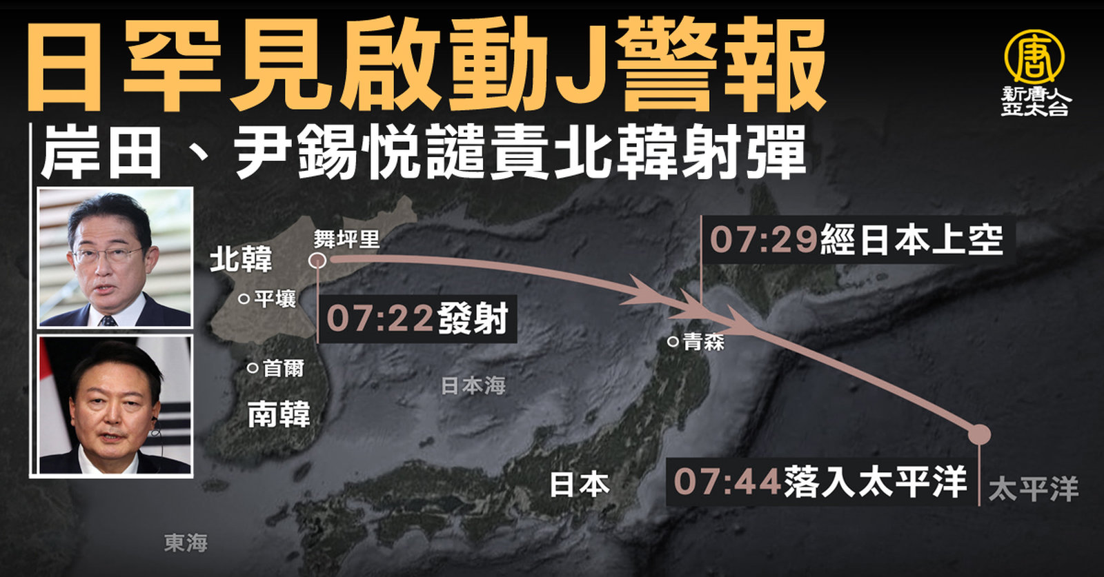 國際焦點來看到,北韓10天內第5次發射飛彈,今天早晨飛越日本東北上空,日本罕見啟動「全國瞬時警報系統」,呼籲北海道與青森縣民眾避難。而美國、日本、南韓與台灣政府都在第一時間譴責北韓,美國國家安全顧問蘇利文也分別與南韓和日本官員通話因應。 //asset3.ntdtv.com.tw/public/uploads/assets/2022/10/04/2022-10-04-633c24e70086f.mp4 北韓|彈道飛彈|岸田文雄|日本|南韓|尹錫悅|202210042022-10-04 21:58:59