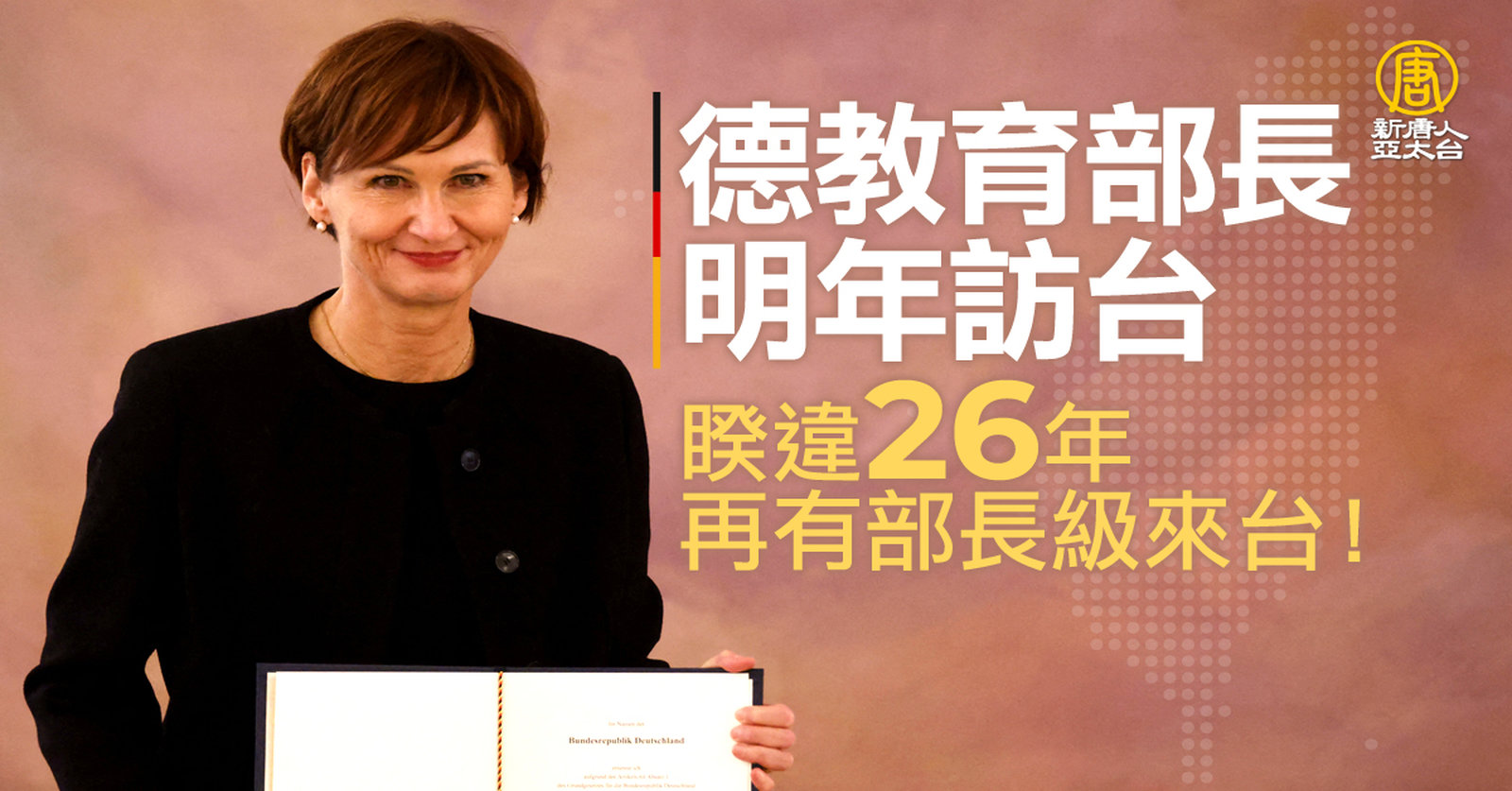 德教育部長明年訪台 睽違26年再有部長級來台!