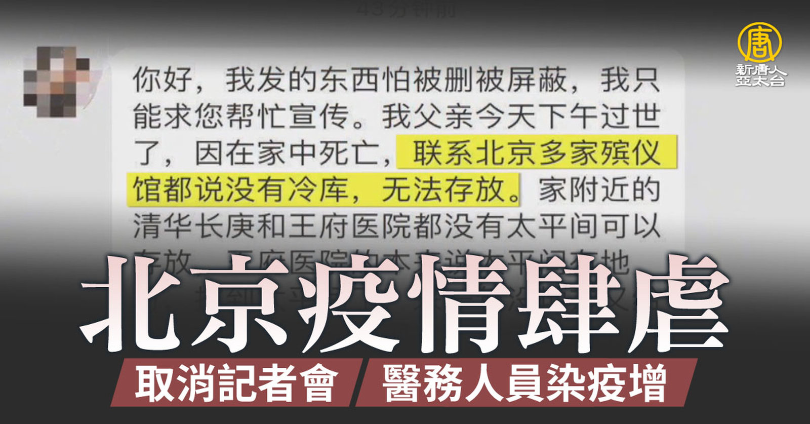 北京疫情兇猛 死亡率急升 殯葬業者曝遺體積存