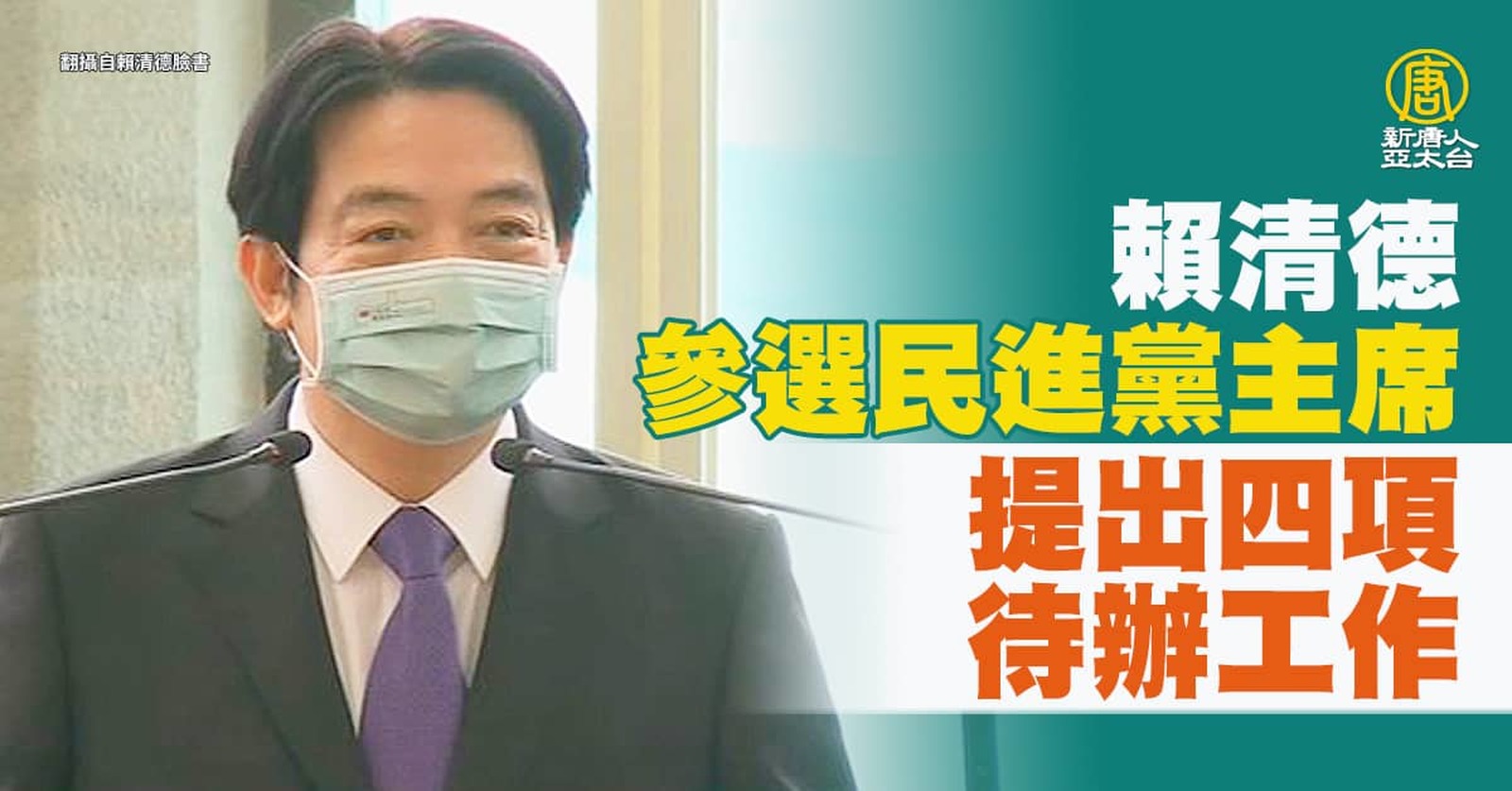 賴清德登記民進黨主席補選 提4目標.各方祝福