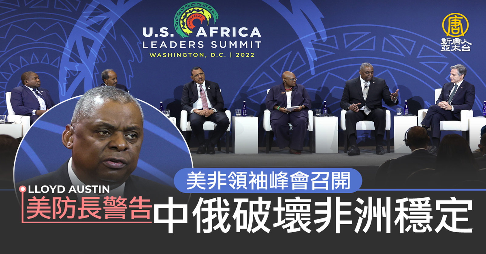 睽違8年,美國與非洲領導人峰會,一連3天在華盛頓舉行,美國國防部長奧斯汀在會上警告,中共和俄羅斯在非洲的影響力,並點名中共不透明的做法,將可能破壞非洲的穩定。 //asset3.ntdtv.com.tw/public/uploads/assets/2022/12/14/2022-12-14-6399c52e76e7b.mp4 美非領袖峰會|非洲|中共|美國|奧斯汀|美非峰會|202212142022-12-14 22:22:46