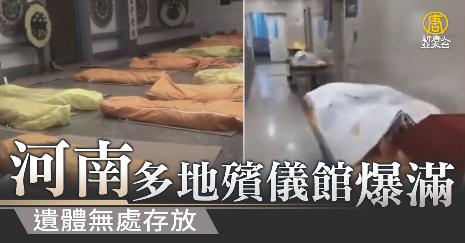 河南新一波疫情高潮,引發死亡率急遽上升,多地殯儀館火化量暴增,遺體無處存放,還有殯儀館告別室滿地是等待火化的屍體。 //asset1.ntdtv.com.tw/public/uploads/assets/2022/12/20/2022-12-20-63a1b27142dcb.mp4 河南|殯儀館|火化|中國疫情|中共病毒|202212202022-12-20 22:41:45