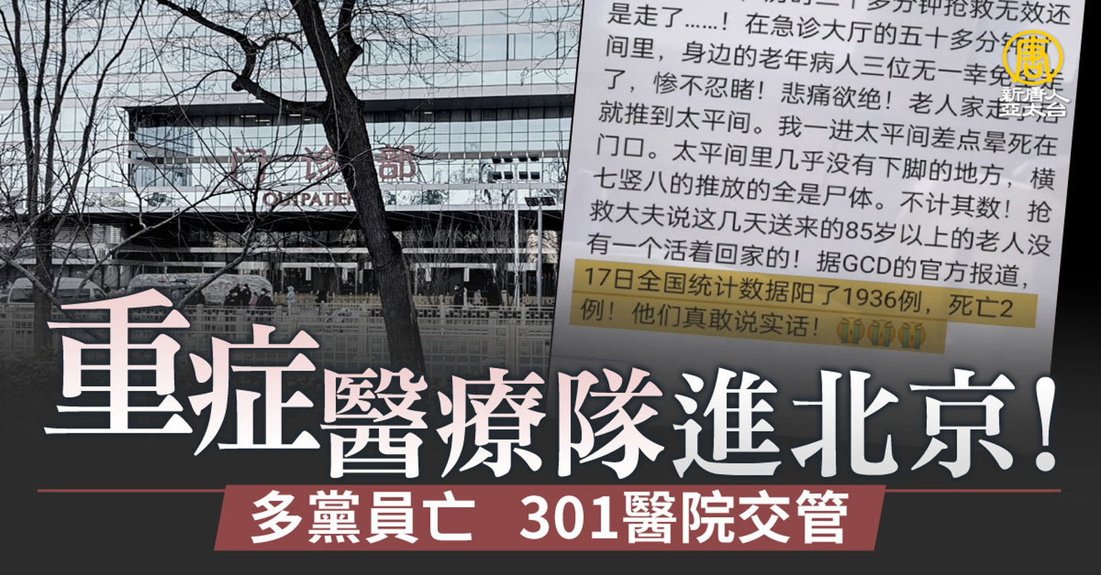 重症醫療隊進北京!多黨員亡 301醫院交管