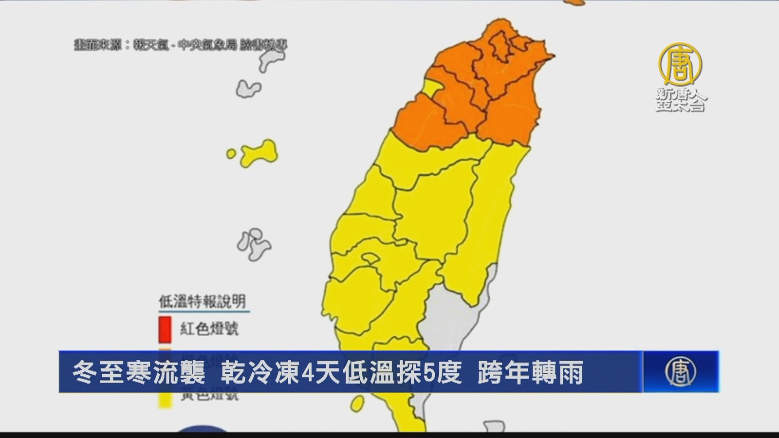 關心天氣,今天是24節氣的「冬至」,台灣遇上冷空氣報到,清晨台北最低溫達10.4度,從「強烈冷氣團」升級成「寒流」,平地最低溫只有6.9度,成為17年來最冷的一次冬至。週末聖誕節將是最冷的時刻。氣象局預估竹苗及宜蘭受到輻射冷卻影響下探6度,也不排除更低,週一寒流減弱但轉為有雨。 //asset3.ntdtv.com.tw/public/uploads/assets/2022/12/22/2022-12-22-63a44cfd80dfb.mp4 低溫|寒流|冬至|冷氣團|天氣預報|202212222022-12-22 22:20:21