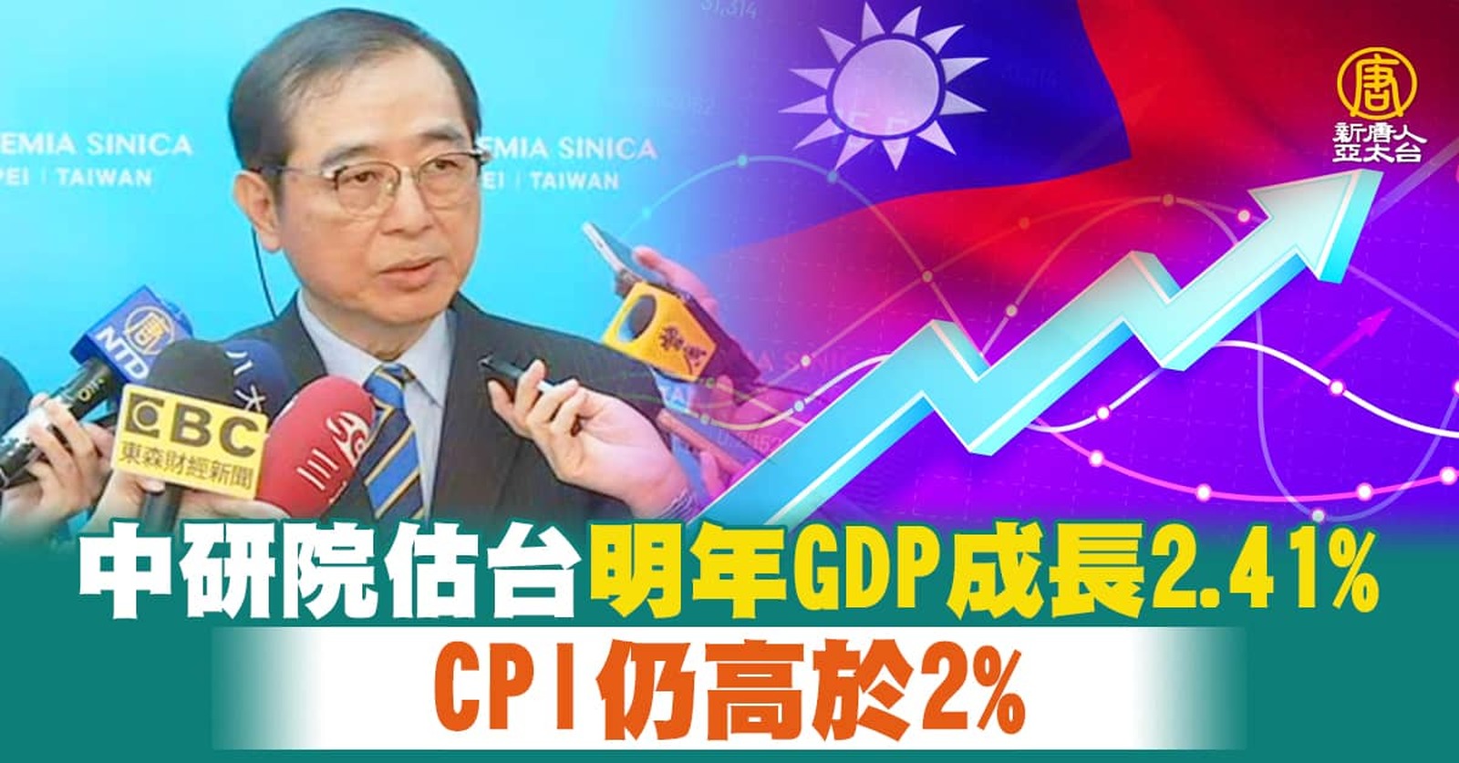 台灣中研院公布最新經濟預測,將台灣今年經濟成長率下修至2.94%,預測明年為2.41%,低於央行預估的2.53%,而在物價方面,預估明年的消費者物價指數CPI為2.15%,並認為央行預計明年會降至2%以下,是過度樂觀。 //asset3.ntdtv.com.tw/public/uploads/assets/2022/12/22/2022-12-22-63a44b36bca5f.mp4 中研院|CPI|經濟成長|202212222022-12-22 22:15:14
