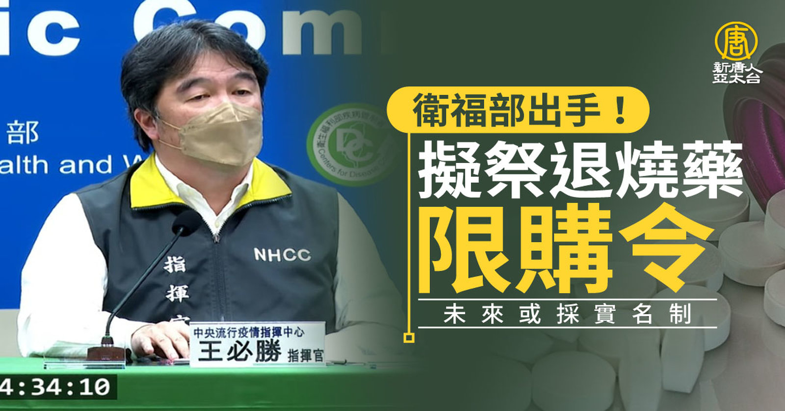 中國疫情持續升溫,當地多個地方傳出藥物缺乏、藥價飆漲情況。就連台灣近期,也出現藥物搶購情形。衛福部長薛瑞元回應,已經要求藥廠,優先處理醫療院所訂單,同時請藥局進行勸導性限購,初步以乙醯胺酚藥物為主。指揮中心今天表示,不只是普拿疼被掃貨,相關乙醯胺酚藥品,都出現大量採購的情況。 //asset3.ntdtv.com.tw/public/uploads/assets/2022/12/22/2022-12-22-63a448c49a0be.mp4 普拿疼|乙醯胺酚|中國疫情|指揮中心|搶藥|中共病毒|202212222022-12-22 22:07:37