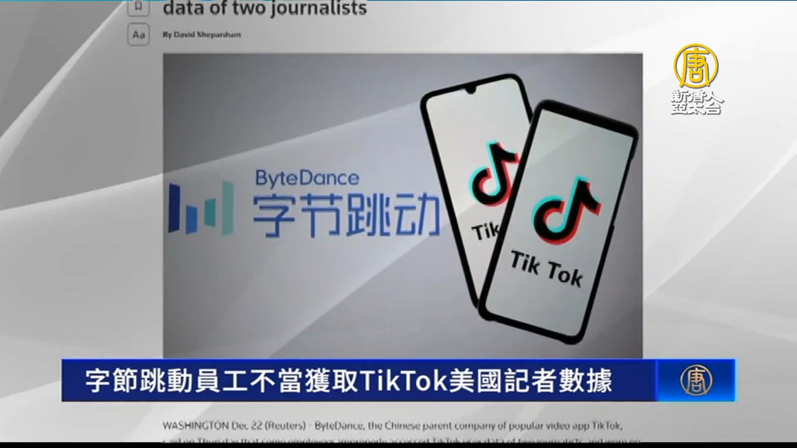 短影音平台TikTok在美國醜聞不斷,最近又傳出,其母公司「字節跳動」的員工,「不當」查閱了兩名美國記者的個人數據。 //asset2.ntdtv.com.tw/public/uploads/assets/2022/12/24/2022-12-24-63a6f0463cc78.mp4 TikTok|字節跳動|非法查閱個人數據|202212242022-12-24 22:10:02