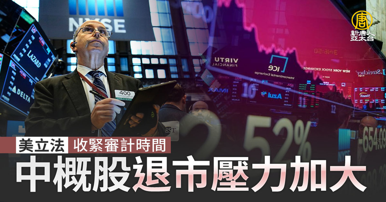 美國眾議院23日通過立法修正案,國會議員們將加大對在美國證券交易所上市的中概股的壓力,要求中企財務審計更加透明,並將退市過程從3年縮短至2年,影響大約200家在美國交易所上市的香港和中國公司。 //asset1.ntdtv.com.tw/public/uploads/assets/2022/12/24/2022-12-24-63a6ef1d23101.mp4 財經100秒|中概股|退市|三星|冬季風暴|國際油價|202212242022-12-24 22:04:00