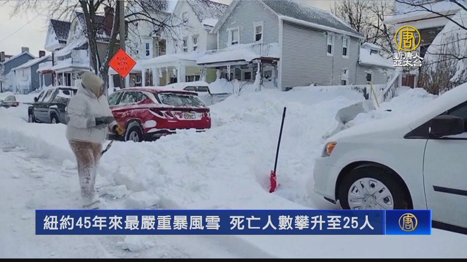 鏡頭轉到美國,冬季暴風雪持續導致美國各地交通大亂,電力中斷以及民眾受困。到26日為止,已造成全美至少58人死亡,其中,美國紐約州水牛城所在的伊利縣,至少有28人喪命。當局預估,死亡人數還會持續攀升。美國總統拜登批准紐約州進入緊急狀態。 //asset1.ntdtv.com.tw/public/uploads/assets/2022/12/27/2022-12-27-63aaee33dbd84.mp4 紐約|停電|暴風雪|聖誕節|202212272022-12-27 22:57:34