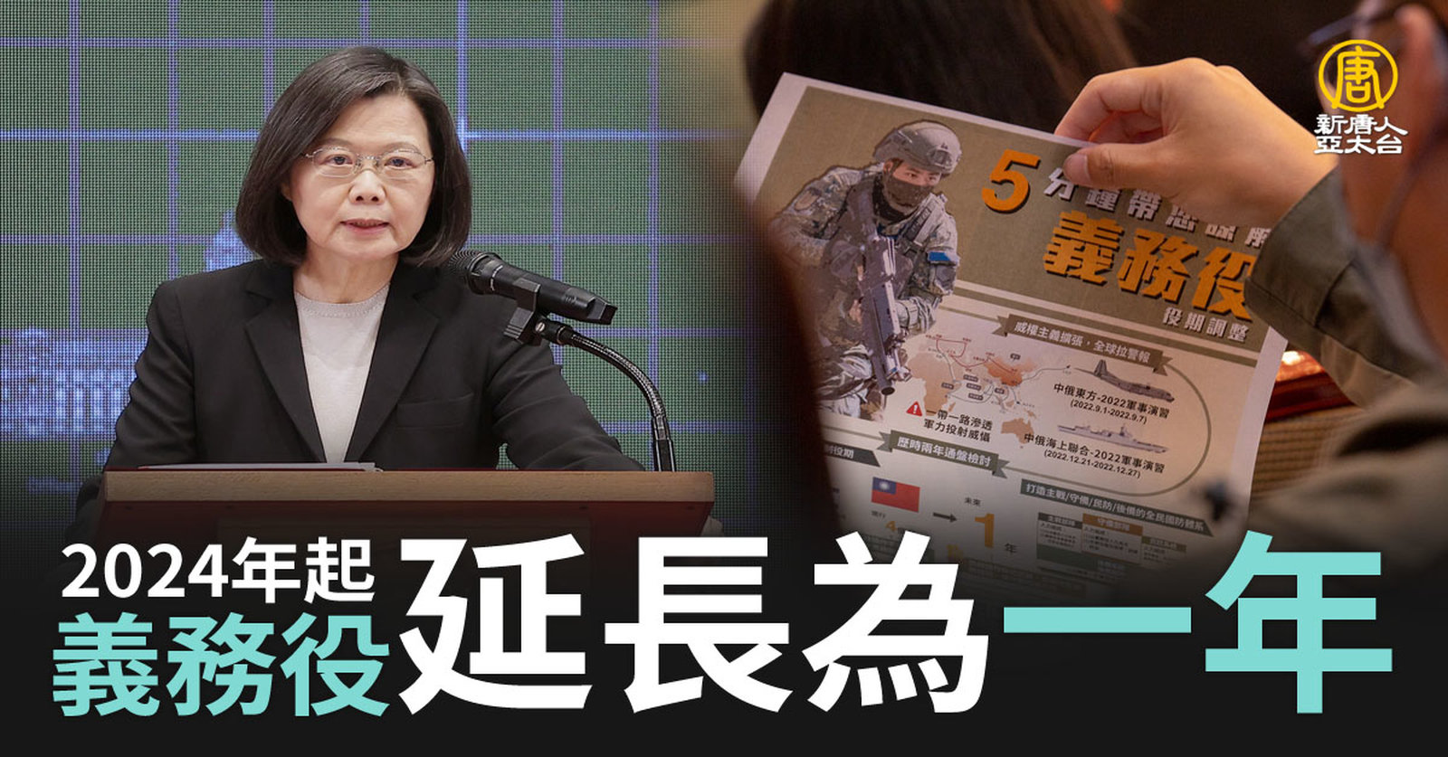 中共升高台海情勢,總統蔡英文在國安高層會議上,拍板兵役延長至一年,強調,台灣處在威權主義擴張的第一線,「備戰才能夠避戰,能戰才能止戰」,更提出讓役男在大學4年同時完成服役和學業的構想。好,台灣社會輿論反應如何呢?記者詹詠茹有更多的說明。 //asset1.ntdtv.com.tw/public/uploads/assets/2022/12/27/2022-12-27-63aae1028d616.mp4 義務役|兵役延長|民調|共軍|共機|202212272022-12-27 22:43:27