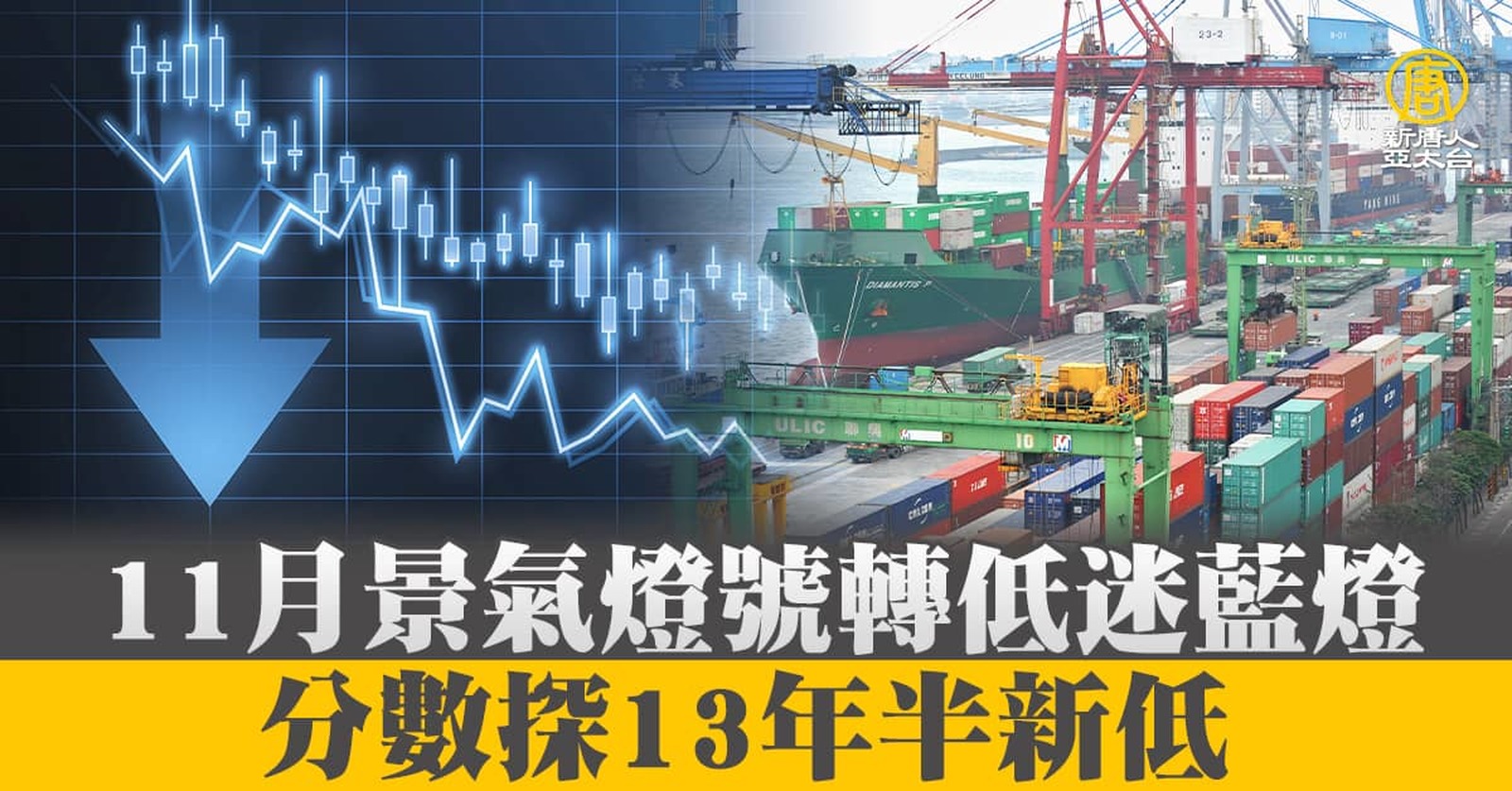 11月景氣燈號轉低迷藍燈 分數探13年半新低