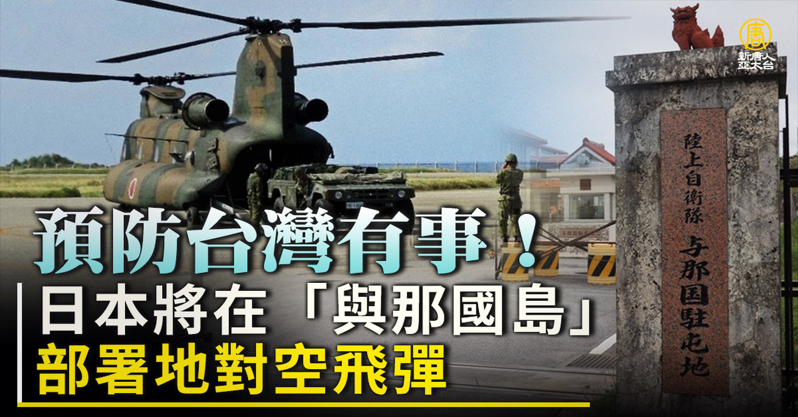 為強化國土防禦能力,日本防衛省發言人青木健至在27日證實在2023年度預算編列購地與徵收費用,以取得現有陸上自衛隊在與那國島駐屯地以東約18萬平方公尺土地,將派遣防空飛彈部隊進駐,以因應鄰近海域發生緊急狀況與武裝衝突。而與那國島是日本各離島中,距離台灣最近的島嶼,大約僅有110公里。 //asset3.ntdtv.com.tw/public/uploads/assets/2022/12/28/2022-12-28-63ac3aa4809b3.mp4 寰宇掃描|與那國島|地對空飛彈|台灣有事|無人機|南韓|俄羅斯|預算赤字|喬科維奇|澳網|202212282022-12-28 21:29:24