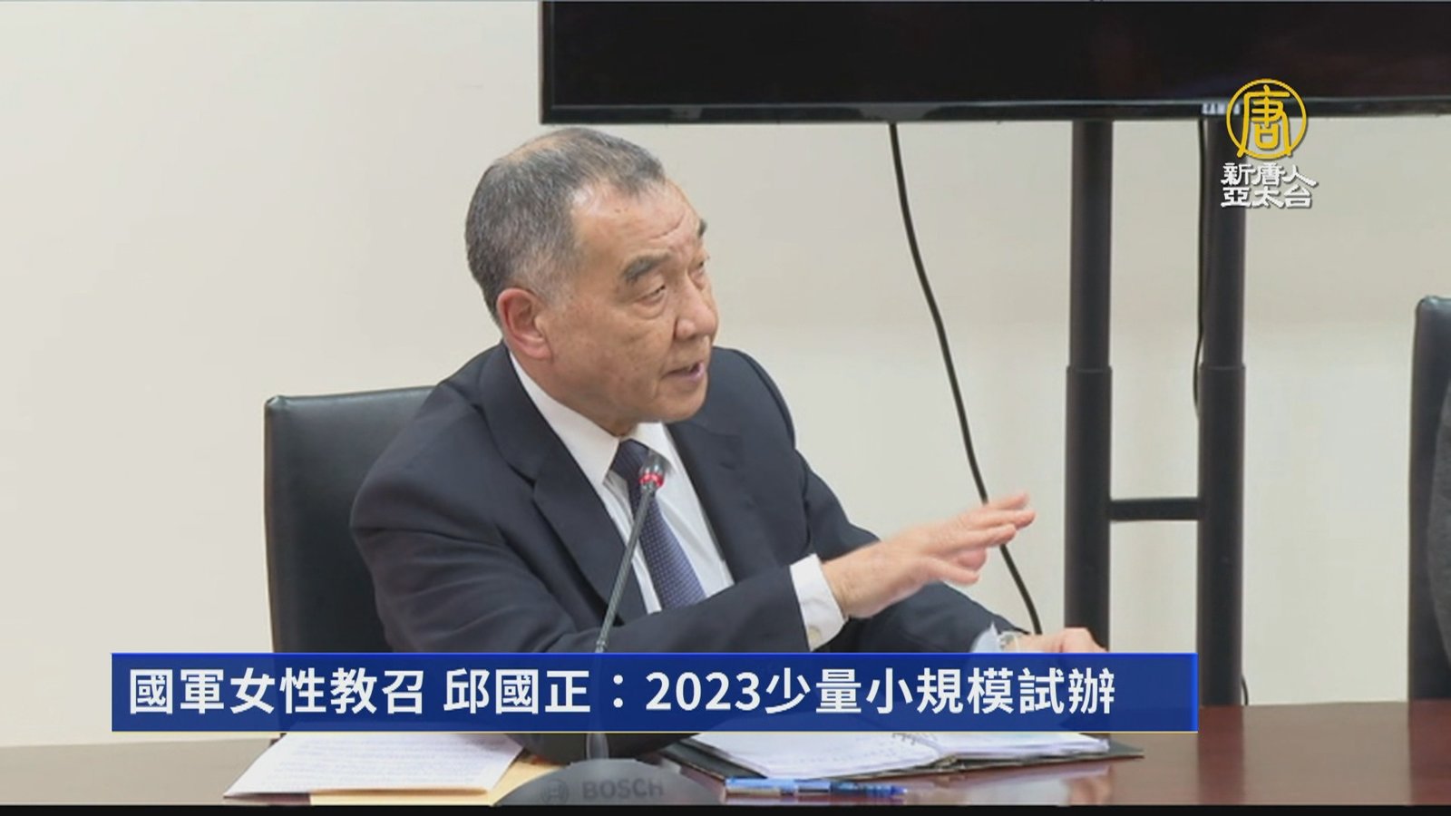 總統蔡英文昨天記者會,宣布國軍義務役役期恢復為一年,從2024年元旦實施。國防部長邱國正今天(28日)拜會立法院在野黨團,親自說明。時代力量立委王婉諭希望未來可以將女性官兵納入教召對象,邱國正證實,明年教召將試辦女性教召,只是受限於各項設備、各方面還不成熟,先招募十幾人,若成效好第二季編成為一個連,未來再視情況擴大辦理。 //asset1.ntdtv.com.tw/public/uploads/assets/2022/12/28/2022-12-28-63ac328e7f448.mp4 義務役|兵役延長|國防部|邱國正|女性教召|202212282022-12-28 21:19:56