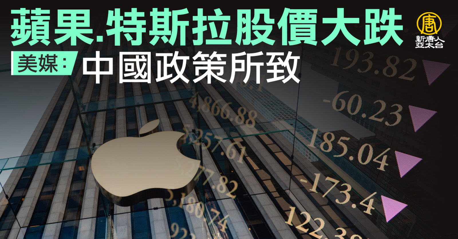 蘋果、特斯拉股價大跌 美媒:中國政策所致