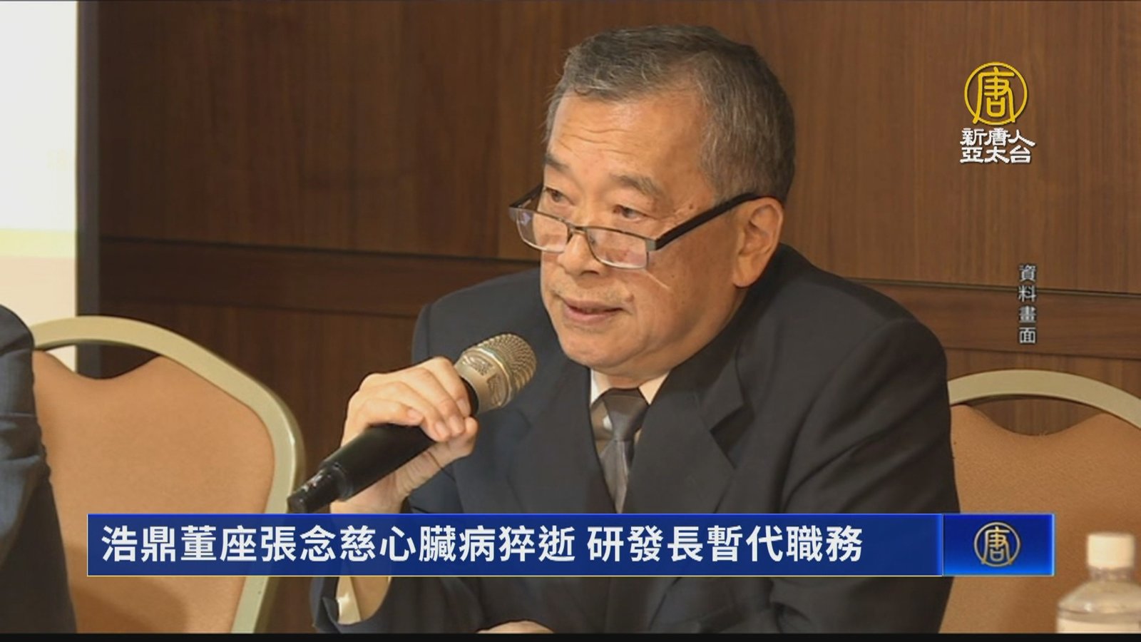 台灣浩鼎生技創辦人、董事長張念慈29日上午突發心臟病猝逝,震驚各界,台灣浩鼎發出新聞稿指出,浩鼎創辦人暨董事長張念慈博士,今天上午10點左右,在美國家中因突發心臟病猝逝,享壽72歲。浩鼎生技隨即召開緊急會議,將在最短時間召開臨時董事會,推選繼任者,公司業務由研發長賴明添暫代職務,繼續執行研發計畫。 //asset2.ntdtv.com.tw/public/uploads/assets/2022/12/29/2022-12-29-63ad87325c36a.mp4 浩鼎生技|張念慈|心臟病|猝逝|202212292022-12-29 22:37:16