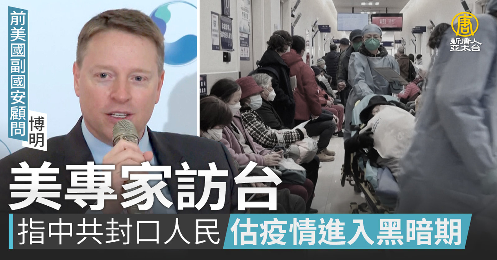全球經歷三年疫情,中國疫情猛爆又不透明,國際擔憂。美國前白宮副國安顧問博明和妻子,前美國CDC疾控中心病毒學專家楊小燕受邀訪台,探討疫情起源與因應。兩人都指出,疫情很可能起自中共武漢病毒研究所外洩事故。楊小燕警告,中國大陸在黃曆過年期間可能進入疫情的黑暗期;博明表示,許多中國人民試圖在早期傳遞疫情訊息到海外,但遭到中共封口。 //asset1.ntdtv.com.tw/public/uploads/assets/2023/01/11/2023-01-11-63beac8f68332.mp4 中國疫情|中共病毒|武漢病毒研究所|博明|楊小燕|202301112023-01-11 21:33:03
