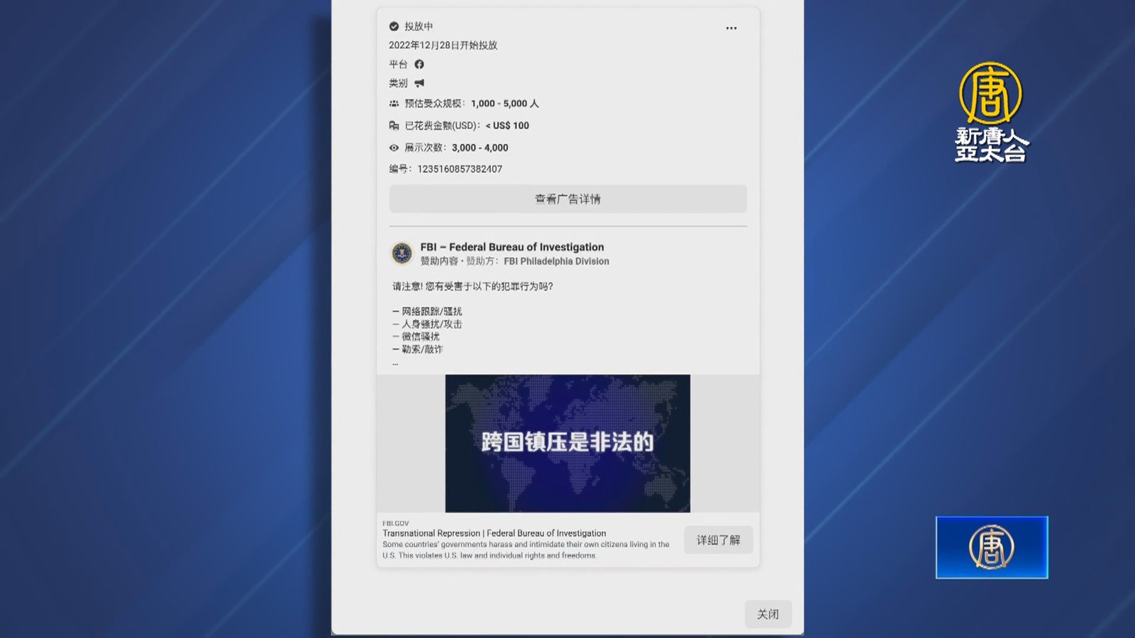 週四,紐約時報揭露出,美國聯邦調查局(FBI),已經在去年秋天,搜查了中共在紐約長樂公會設立的海外110警察站。還有知情人士披露,在美的中共警察局還曾試圖與紐約市警局合作,要一起培訓警察。 //asset3.ntdtv.com.tw/public/uploads/assets/2023/01/13/2023-01-13-63c1525ecce61.mp4 美國聯邦調查局|FBI|中共|紐約長樂公會|海外警察局|202301132023-01-13 22:39:57