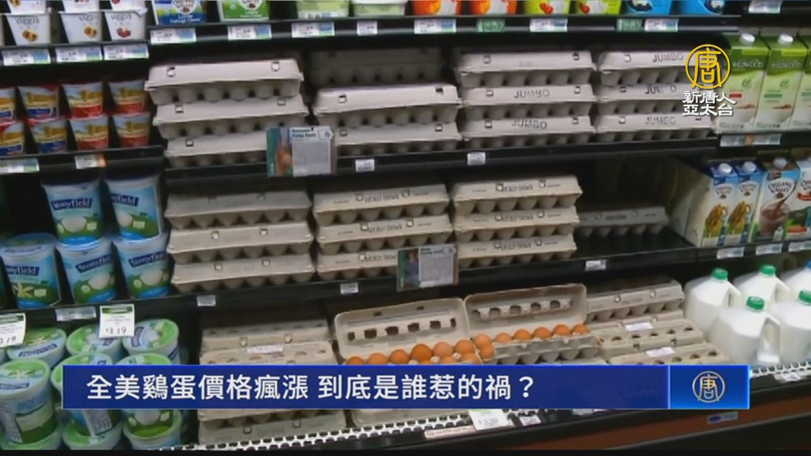 再來看到,台灣蛋價處於高點,美國蛋價也持續飆漲,漲幅將近6成,創下近50年來新高。也因禽流感的影響,蛋的產量供不應求。 //asset3.ntdtv.com.tw/public/uploads/assets/2023/01/13/2023-01-13-63c152e211f5e.mp4 美國|雞蛋|蛋價|美國市場|202301132023-01-13 22:42:36