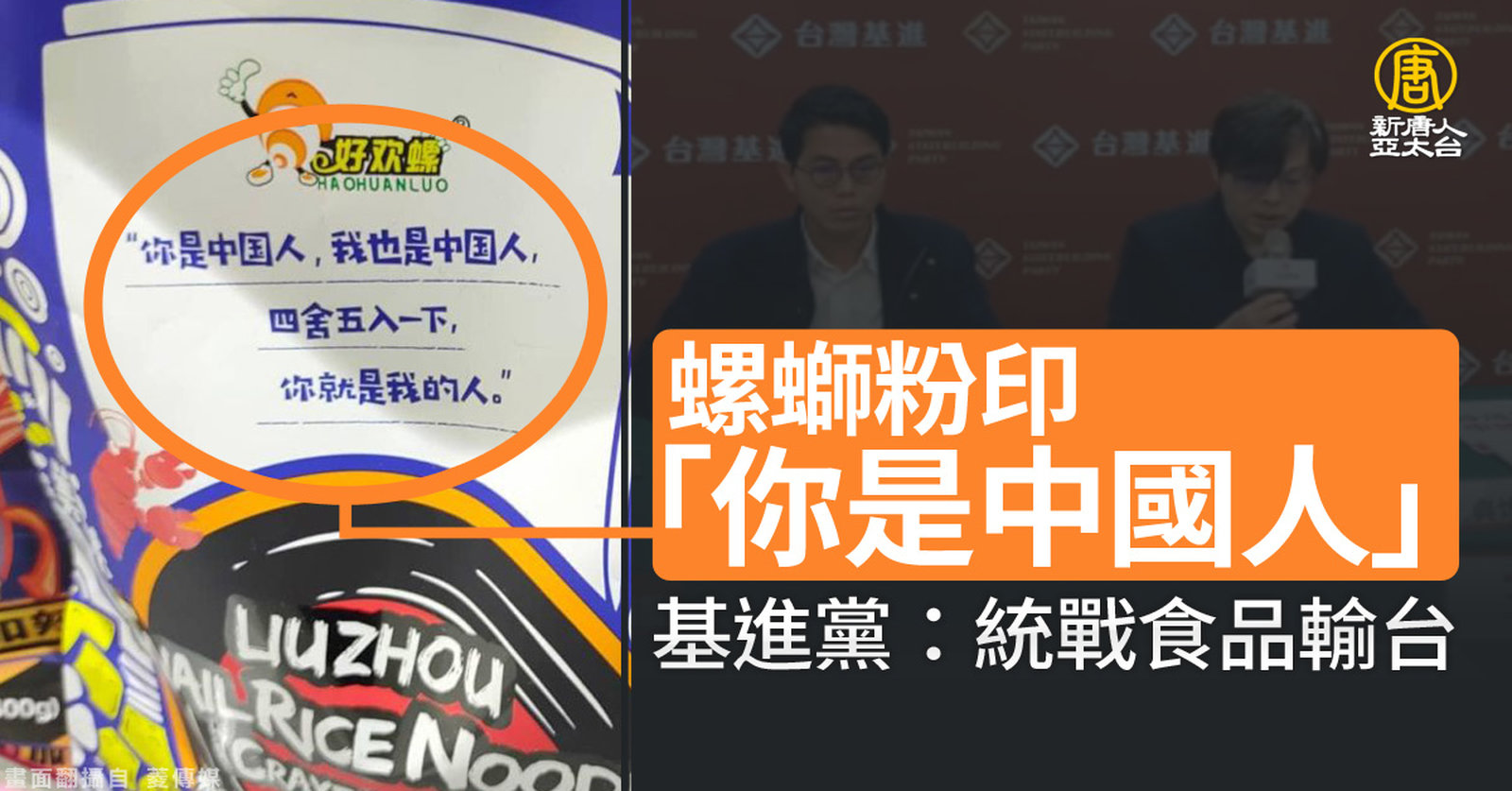 螺螄粉印「你是中國人」 基進黨:統戰食品輸台