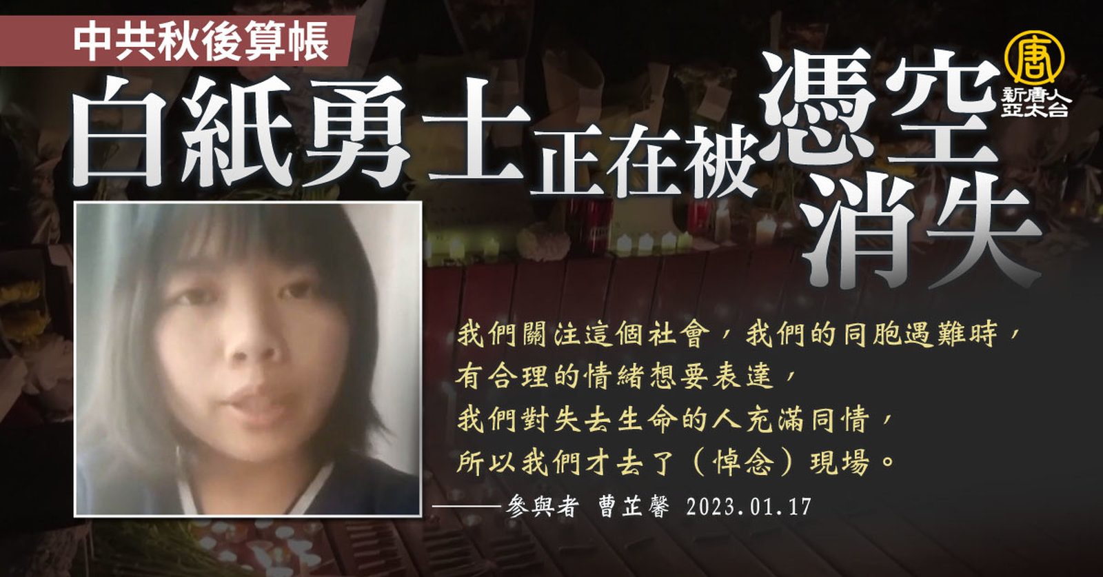 黃曆新年將到,本來應該是中國民眾開心與家人團聚的時刻,許多人卻親身經歷親友密集過世的悲劇,一名北京居民告訴外媒,他的4名親友在短時間內,染疫去世,已無心慶祝過年。 //asset1.ntdtv.com.tw/public/uploads/assets/2023/01/18/2023-01-18-63c7f13fe939c.mp4 中國疫情|中共病毒|倖存者偏差|中共|202301182023-01-18 21:45:51