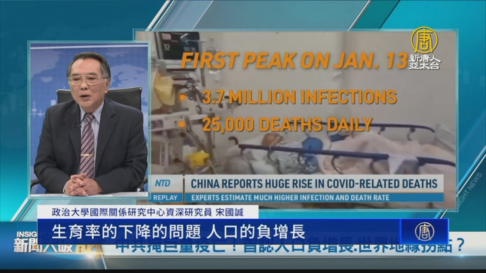 中國疫情井噴式爆發,造成巨大的人口死亡,包括「白肺」「二次感染」等問題,備受關注,我們專訪了被稱為「冠狀病毒之父」的台灣微生物學、病毒學學者賴明詔。他指出,中國那麼多人死亡,可見疫情嚴重程度超乎想像,恐怕將會影響全世界。 //asset2.ntdtv.com.tw/public/uploads/assets/2023/01/18/2023-01-18-63c7e9223d483.mp4 中國疫情|白肺|二次感染|冠狀病毒之父|賴明詔|中共病毒|202301182023-01-18 21:47:22
