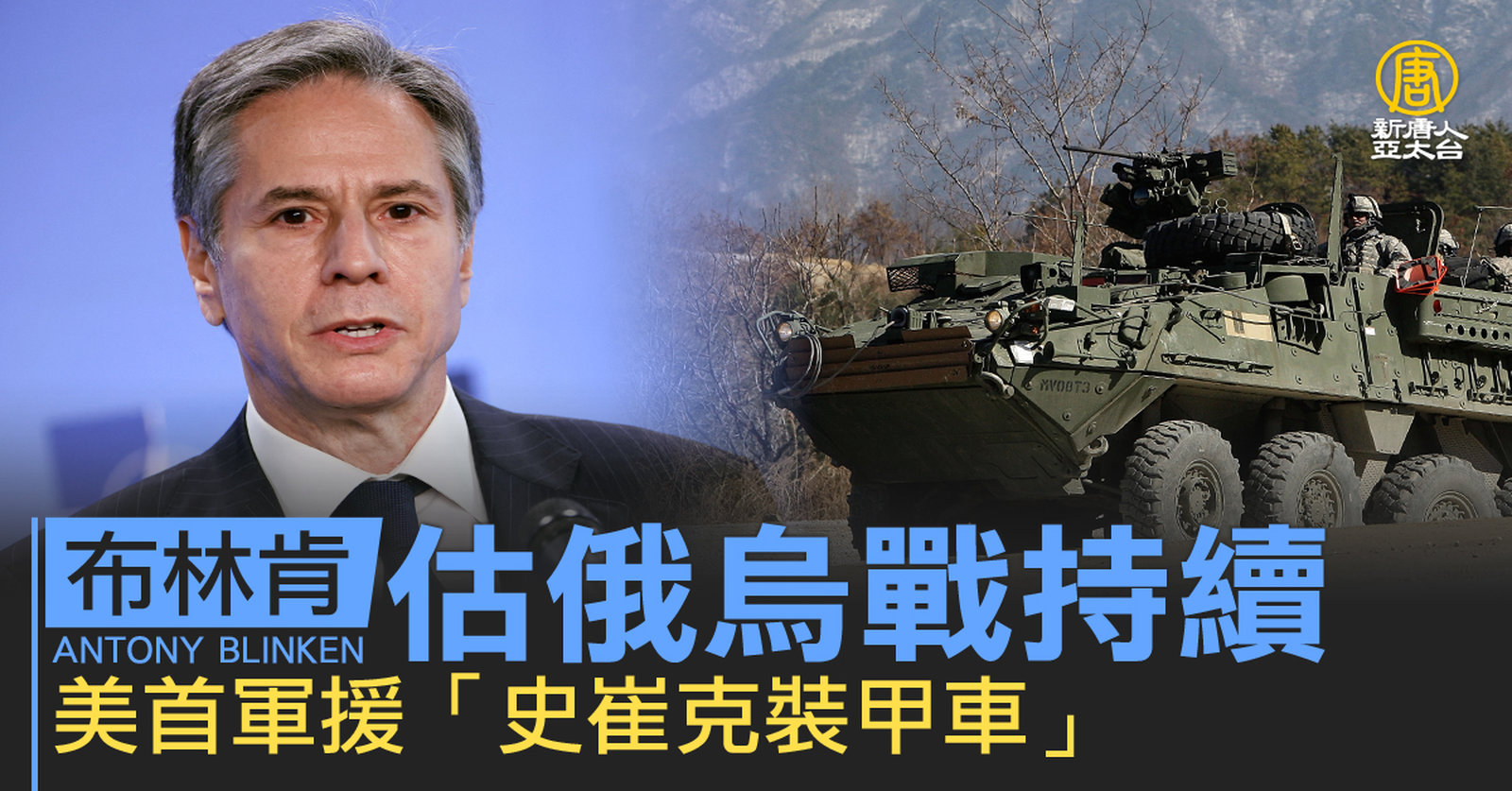 布林肯估俄烏戰持續 美首軍援「史崔克裝甲車」