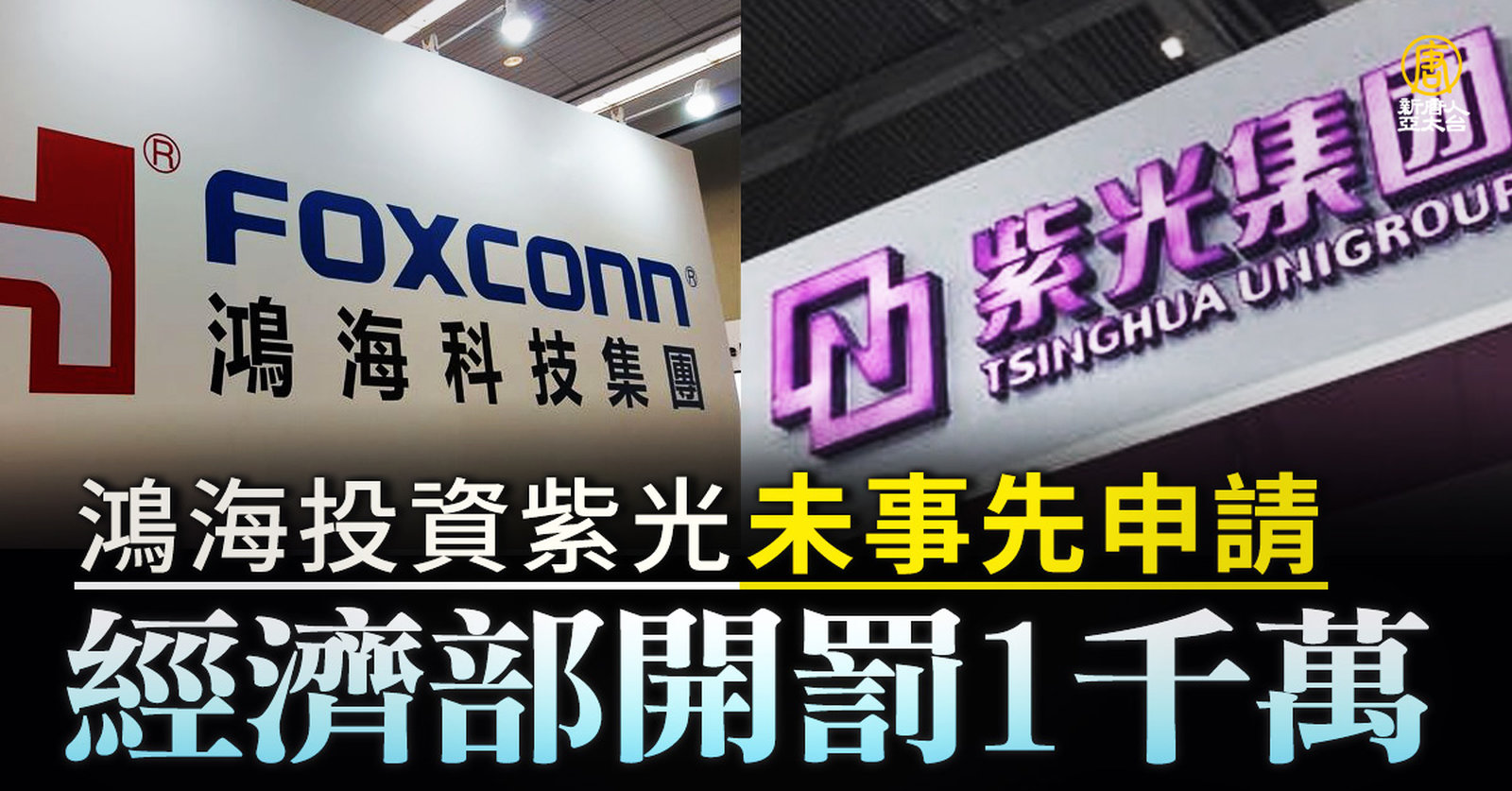 鴻海投資紫光未事先申請 經部開罰1000萬