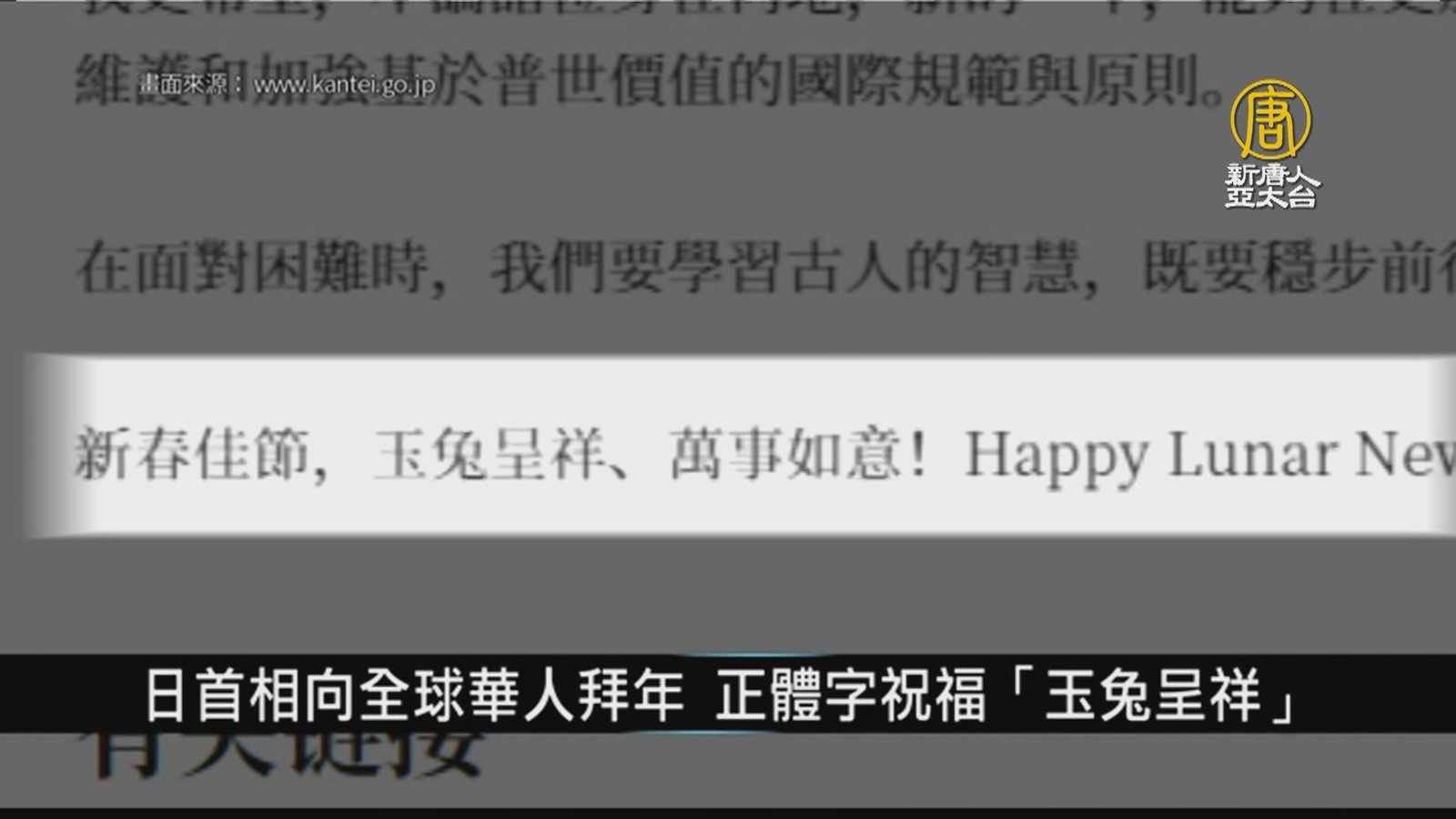 日首相向全球華人拜年 繁體祝福「玉兔呈祥」|寰宇掃描