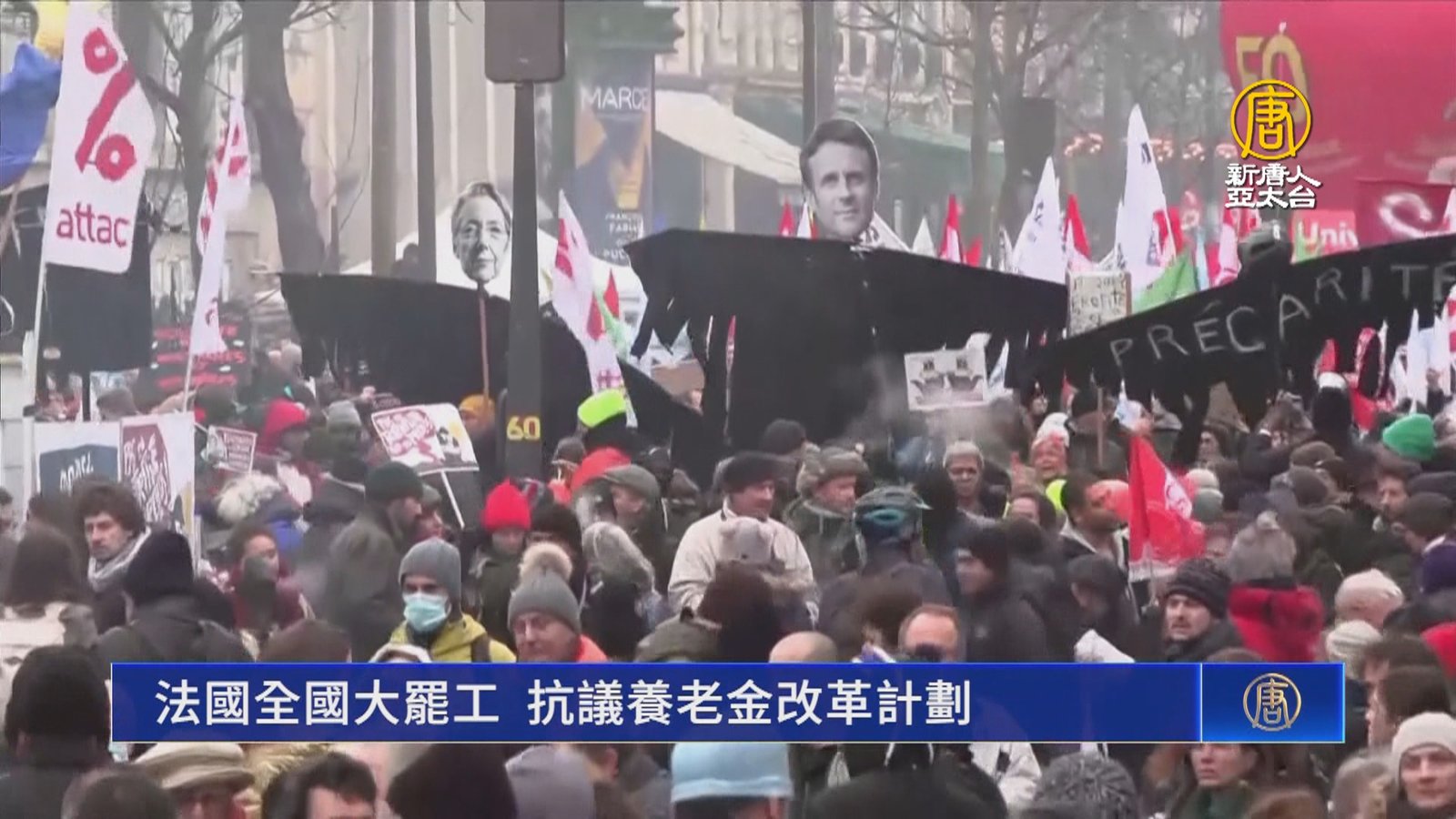 週四,法國全國各地舉行大罷工,抗議政府的養老金改革計劃,導致交通大亂,供電中斷。 //asset3.ntdtv.com.tw/public/uploads/assets/2023/01/20/2023-01-20-63ca972ad338d.mp4 法國大罷工|養老金改革計劃2023-01-20 21:21:51