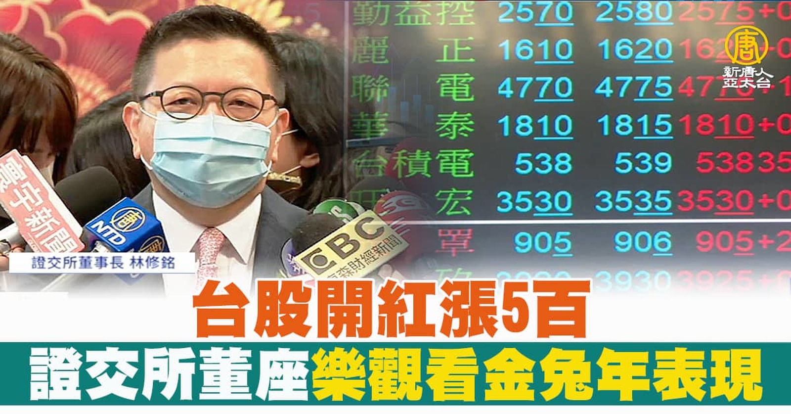 台股開紅盤漲560點 證交所董座樂觀看金兔年