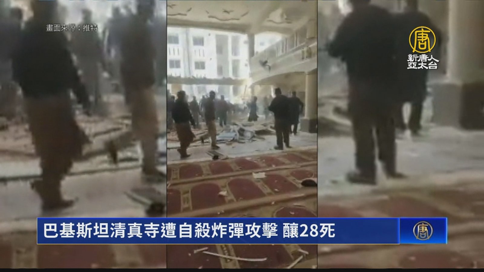 歡迎回來。國際消息,來看到,位於南亞的巴基斯坦,接連2天傳出嚴重死傷,繼週日(29日)發生兩起重大交通意外,巴基斯坦西北部柏夏瓦市一座清真寺,今天(30日)驚傳大爆炸,由於意外發生當下有不少穆斯林在現場,造成多人死傷,當局已封鎖相關地區,只允許救護車進入。《BBC》指出,目前已知至少28人身亡、150人受傷。據當地警方透露,這是一起自殺炸彈攻擊,目前尚未有任何組織承認這場襲擊。 //asset1.ntdtv.com.tw/public/uploads/assets/2023/01/30/2023-01-30-63d7c35be8a87.mp4 巴基斯坦|清真寺|大爆炸|自殺炸彈攻擊|202301302023-01-30 21:17:16