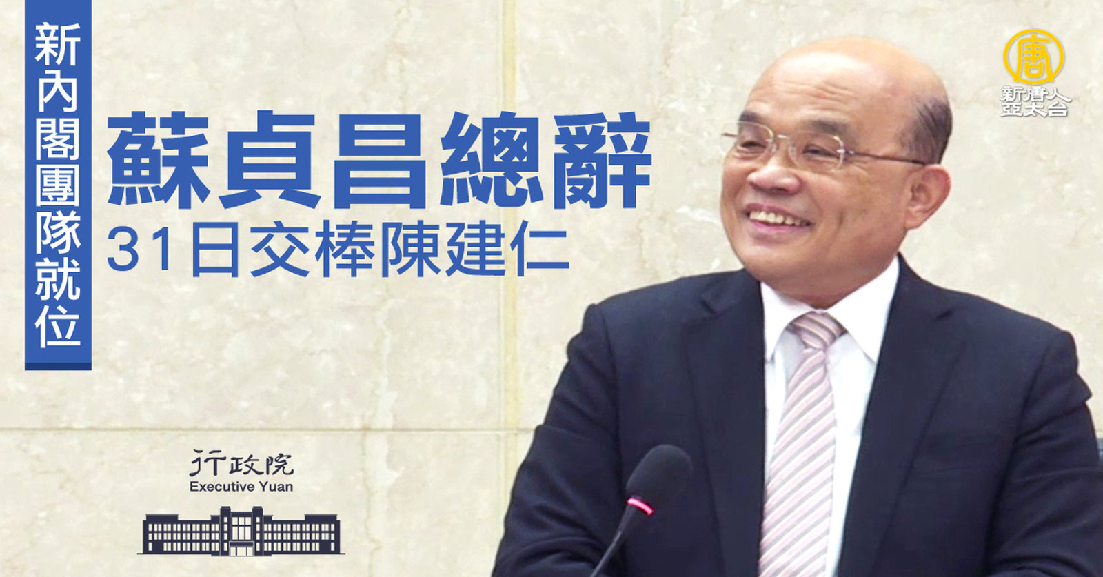 新內閣團隊就位 蘇貞昌總辭、31日交棒陳建仁