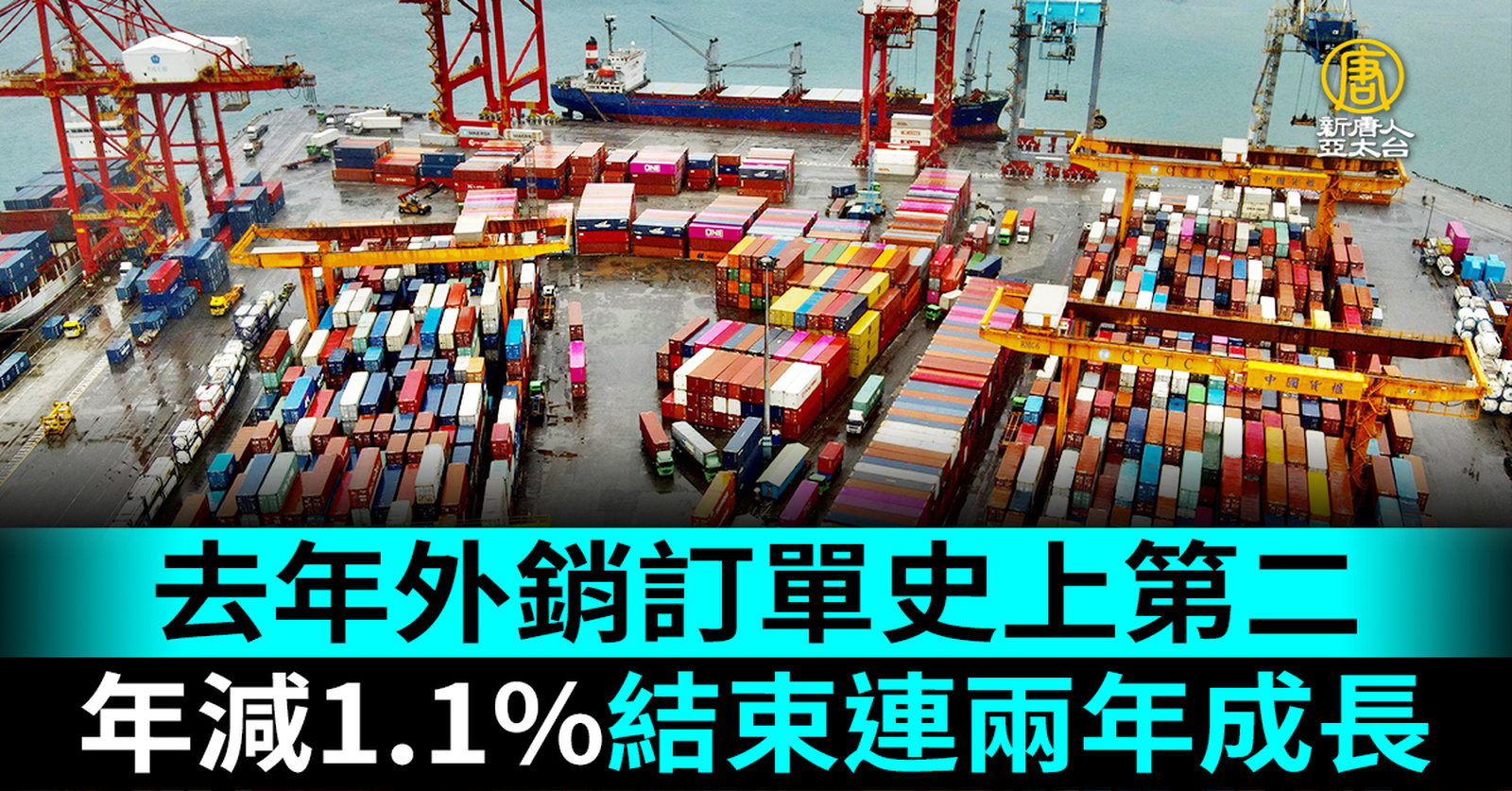 去年外銷訂單史上第二 年減1.1%結束連兩年成長