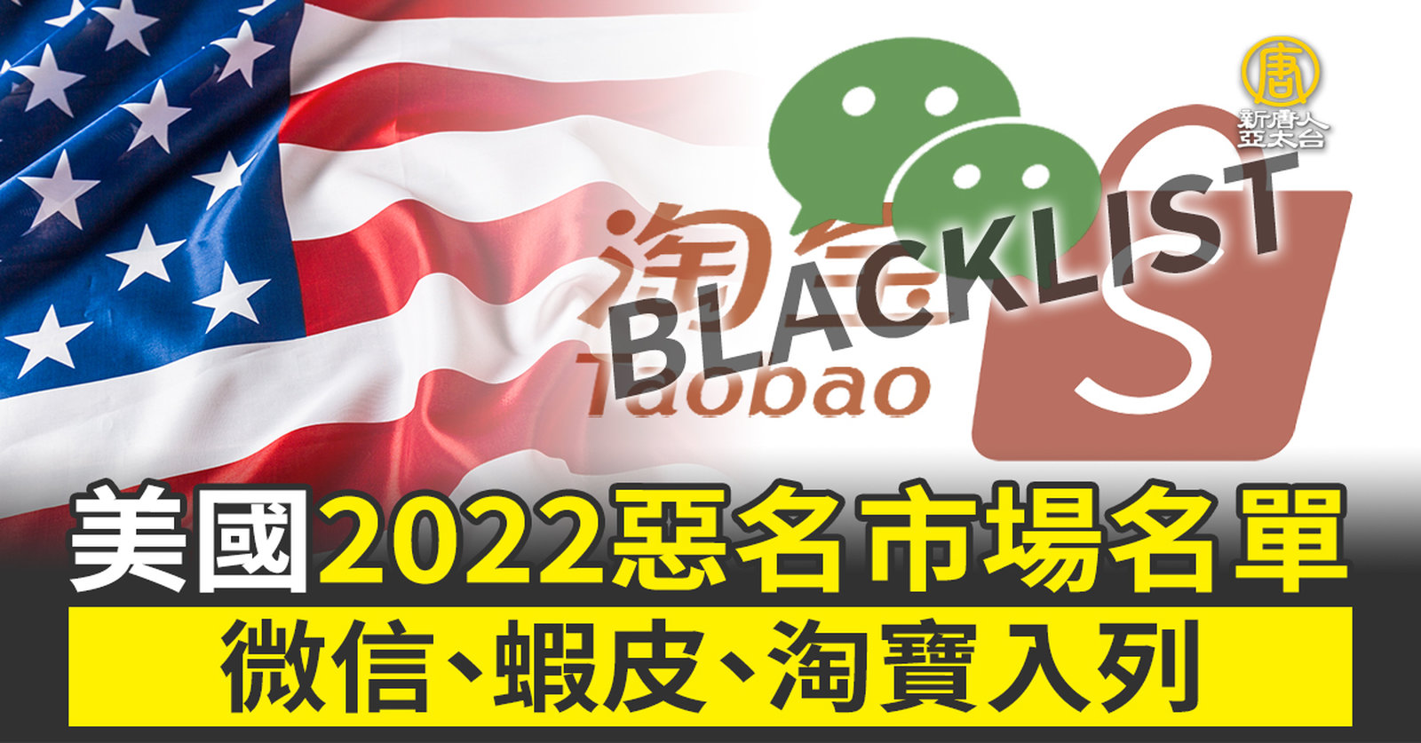 微信、蝦皮、淘寶 入列美國2022惡名市場名單