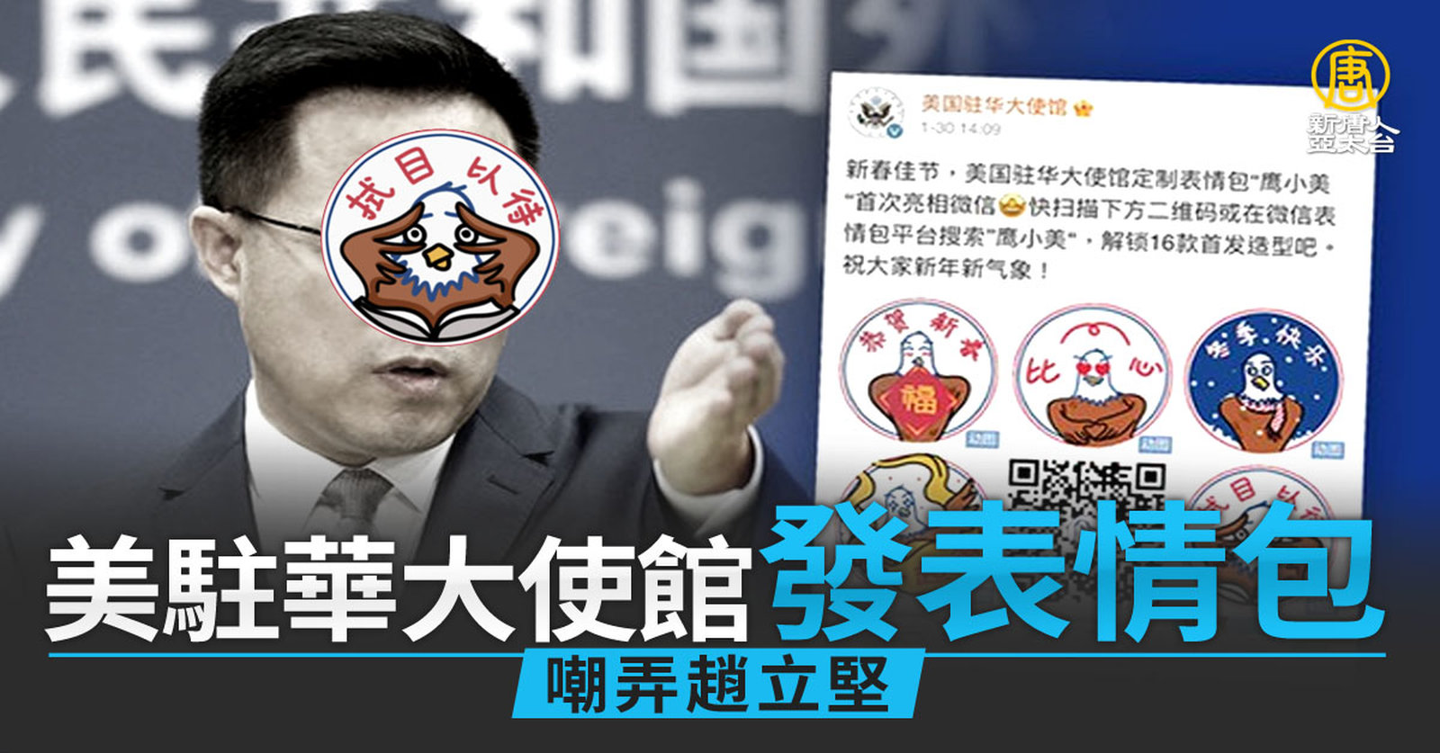 美國駐北京大使館,1月30日推出微信貼圖表情包「鷹小美」,除了一些問候的基本款外,其中一款,「拭目以待」四個字,引發網友熱議。 //asset2.ntdtv.com.tw/public/uploads/assets/2023/02/01/2023-02-01-63da5bc85efc0.mp4 中共|拭目以待|微信貼圖|美國駐華大使館|鷹小美|趙立堅|202302012023-02-01 22:31:56